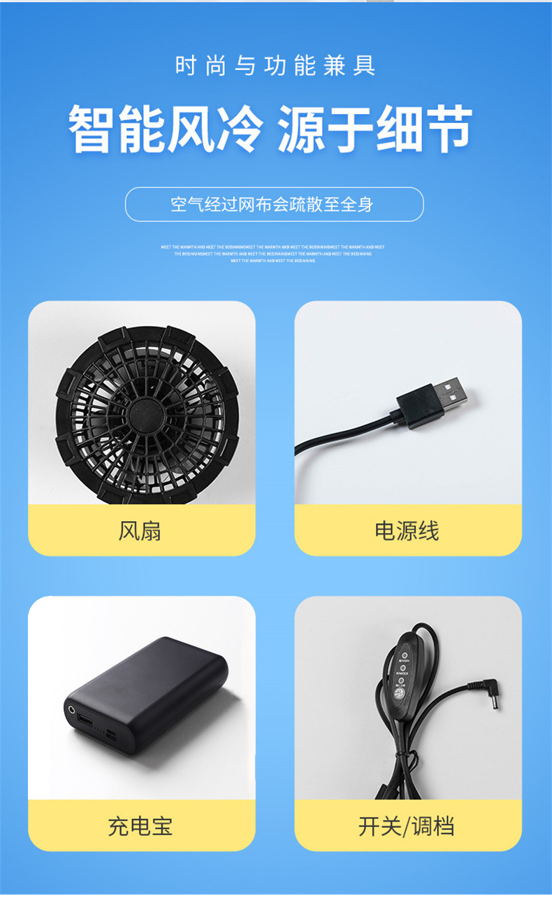 여름 냉각 및 열사병 예방 에어컨 의류 조끼 남성용 야외 용접공의 노동 보호 충전 팬 냉동 작업복