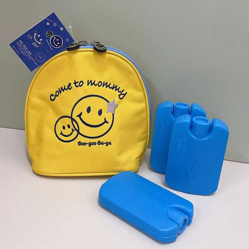 • 파란색 얼음 1 개를 보내는 노란색 다시 우유 가방