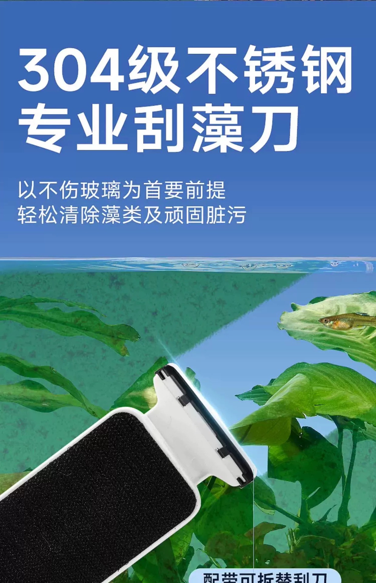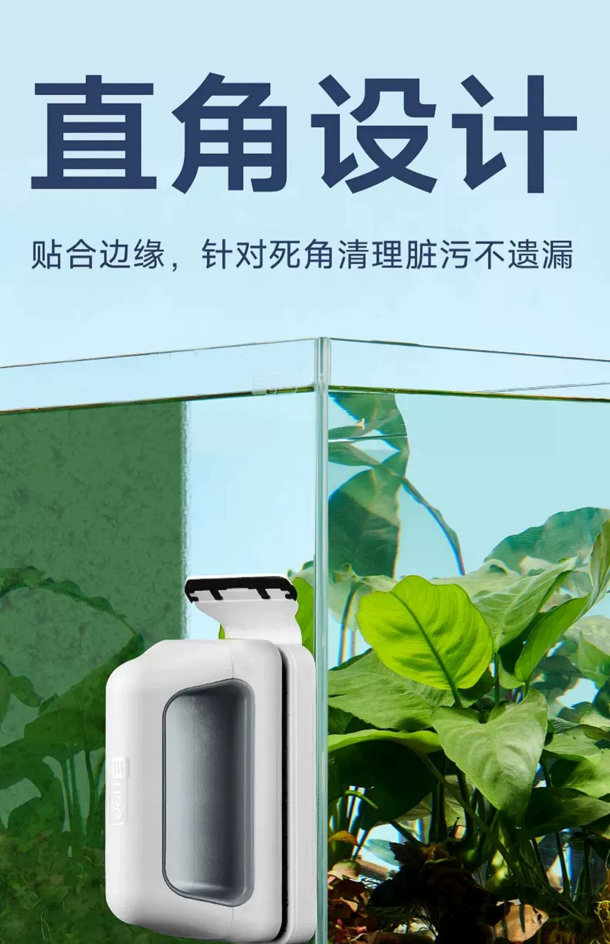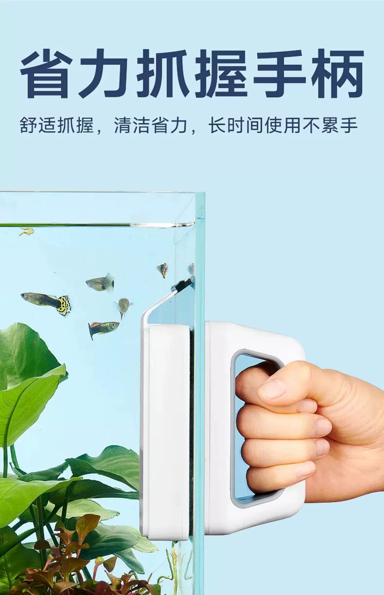 • 새롭게 업그레이드된 조류 제거 스크레이퍼가 포함된 강력한 자석 소형 모델(30-50cm 수조에 적합)