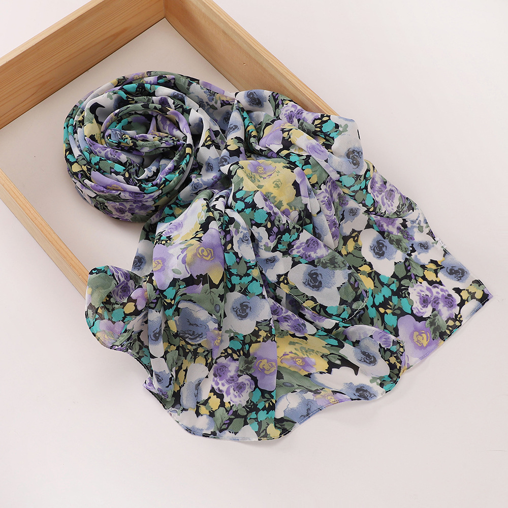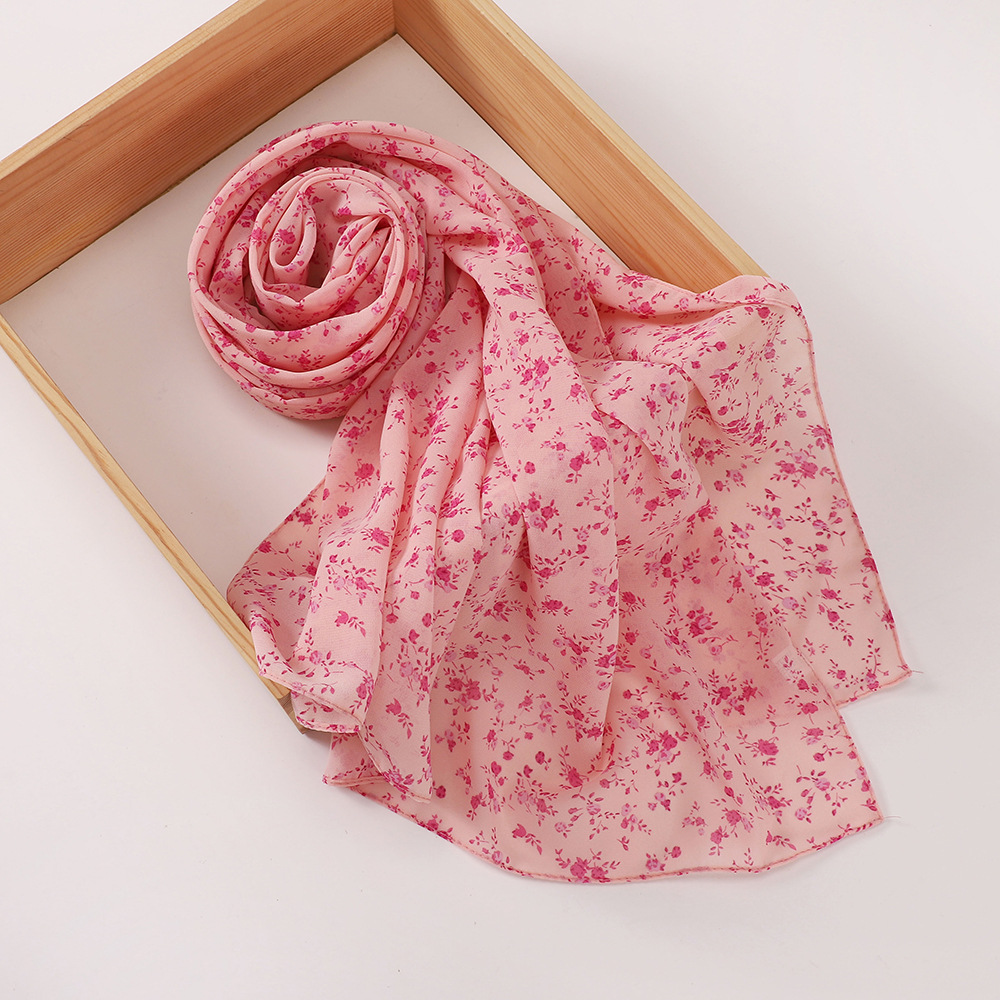 새로운 말레이시아 진주 쉬폰 실크 스카프 로즈 인쇄 캡 후이 터보 스카프 도매