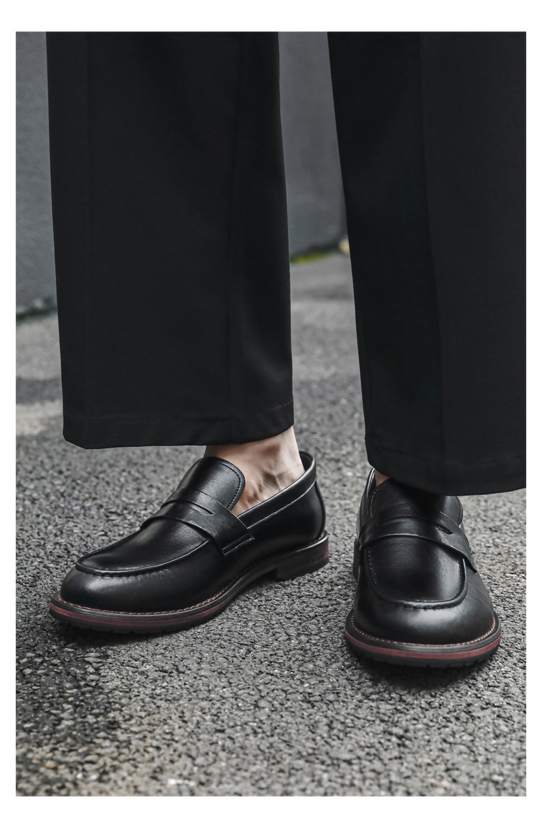 슬립 온 로퍼 남성 비즈니스 캐주얼 가죽 신발 게으른 영국식 하이 엔드 올 매치 유행 통기성 가죽 신발 남성용