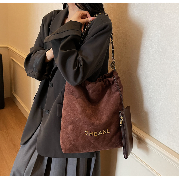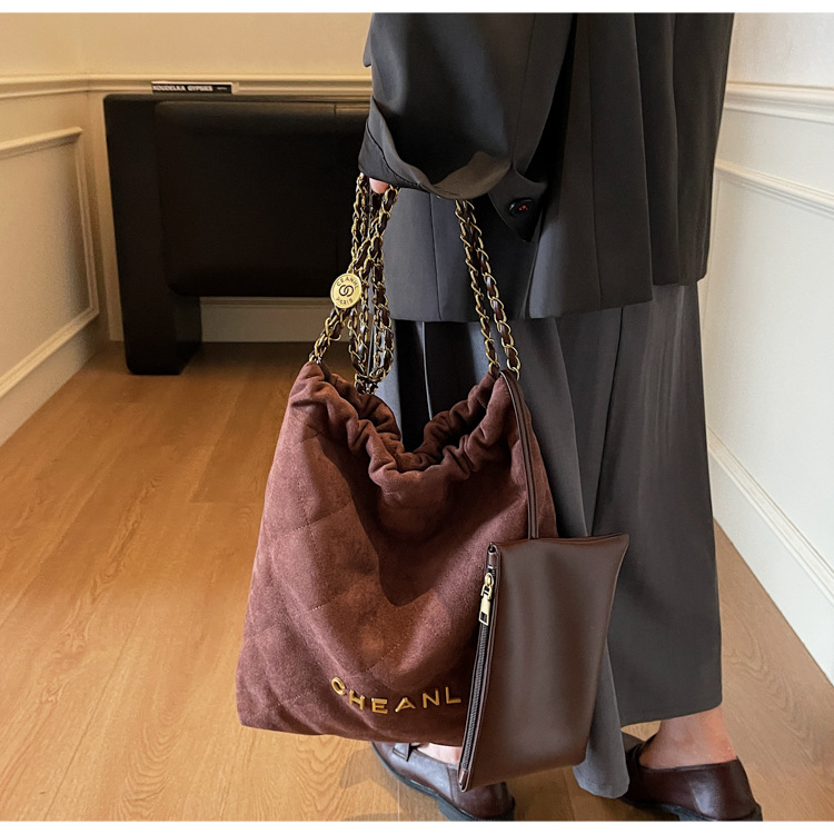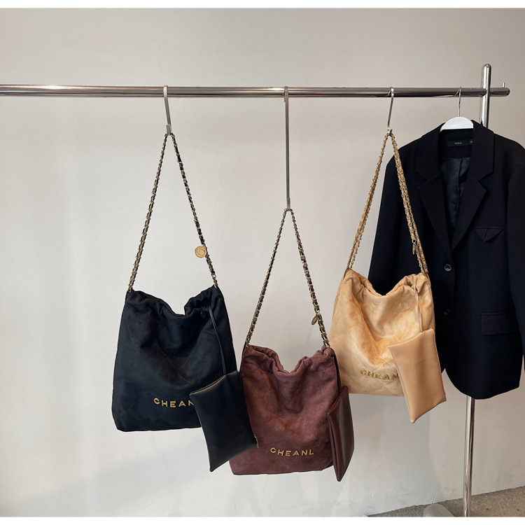 새로운 스웨이드 쓰레기봉투 스타일의 다용도 체인 크로스백, 안쪽에 작은 가방이 있는 숄더백, 작은 사각백 도매