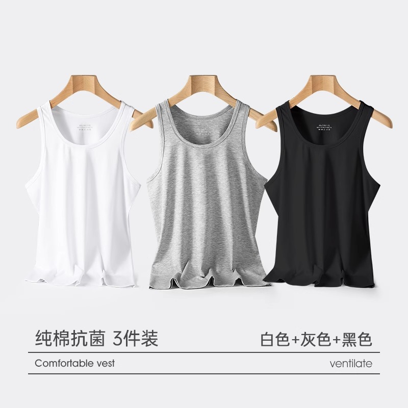 면 남자 조끼 2024 여름 얇은 스포츠 땀 흡수 통기성 피트니스 허들 면 내부 착용베이스 한 셔츠
