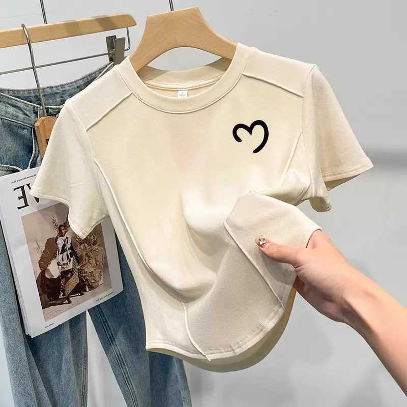 100kg 플러스 사이즈 여성용 숄더 라인이 돋보이는 디자인의 반팔 피쉬본 티셔츠, 슬림하고 몸매를 가려주며 나이를 줄여주는 숏 스타일 상의스토어 가기