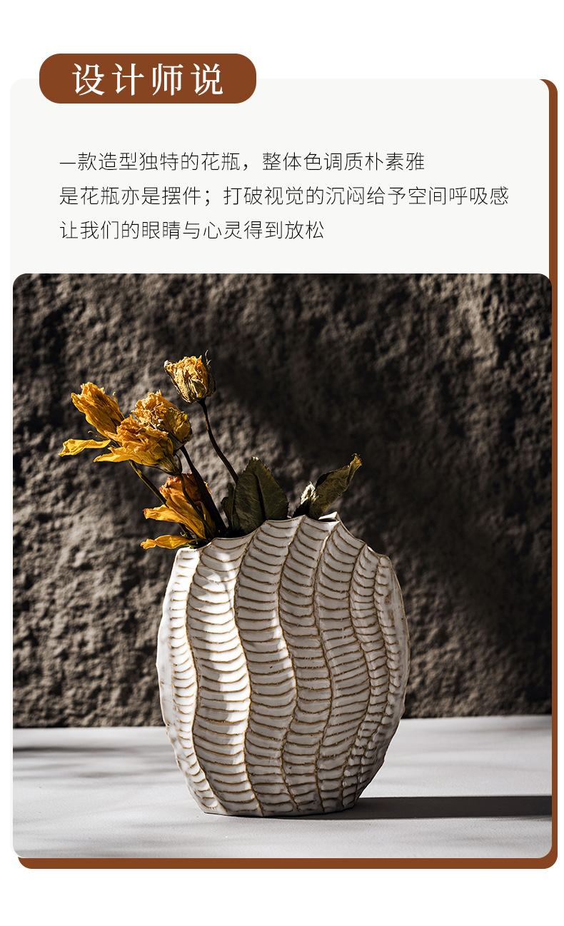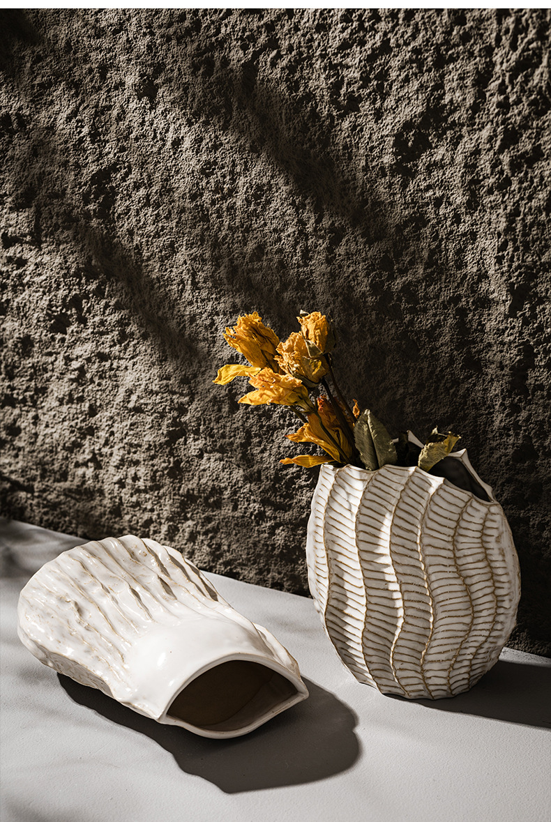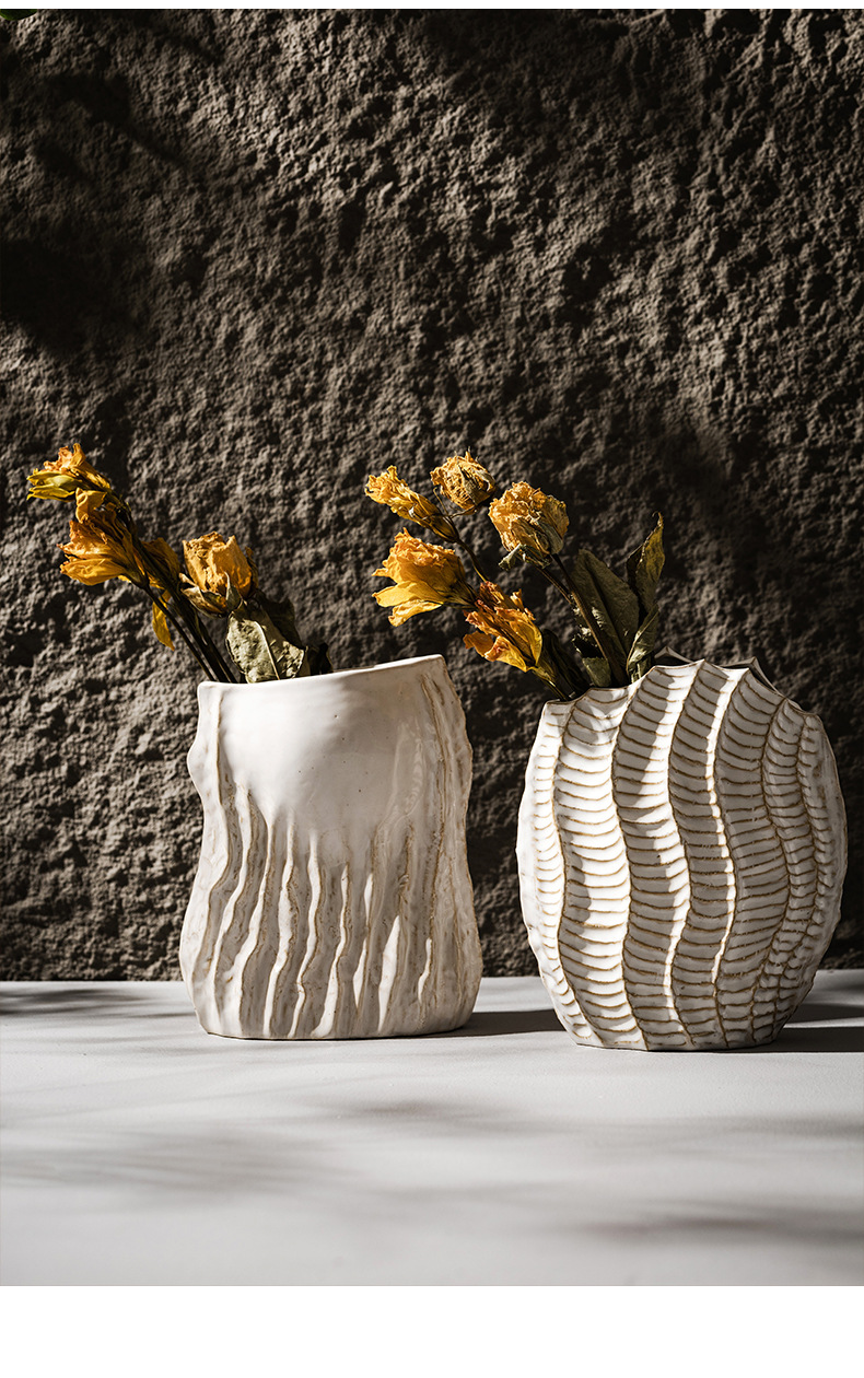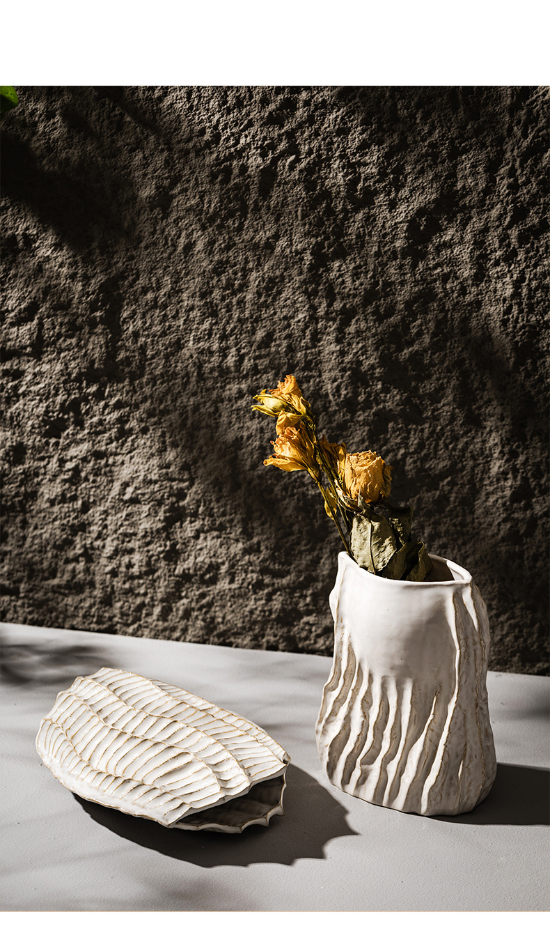 북유럽 스타일 세라믹 꽃병 홈 입구 홈스테이 말린 꽃 꽃-화이트 플라워 장식품 교차 테두리