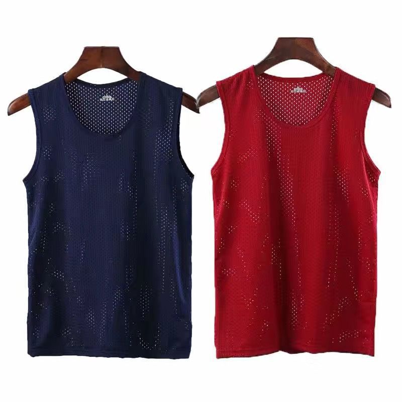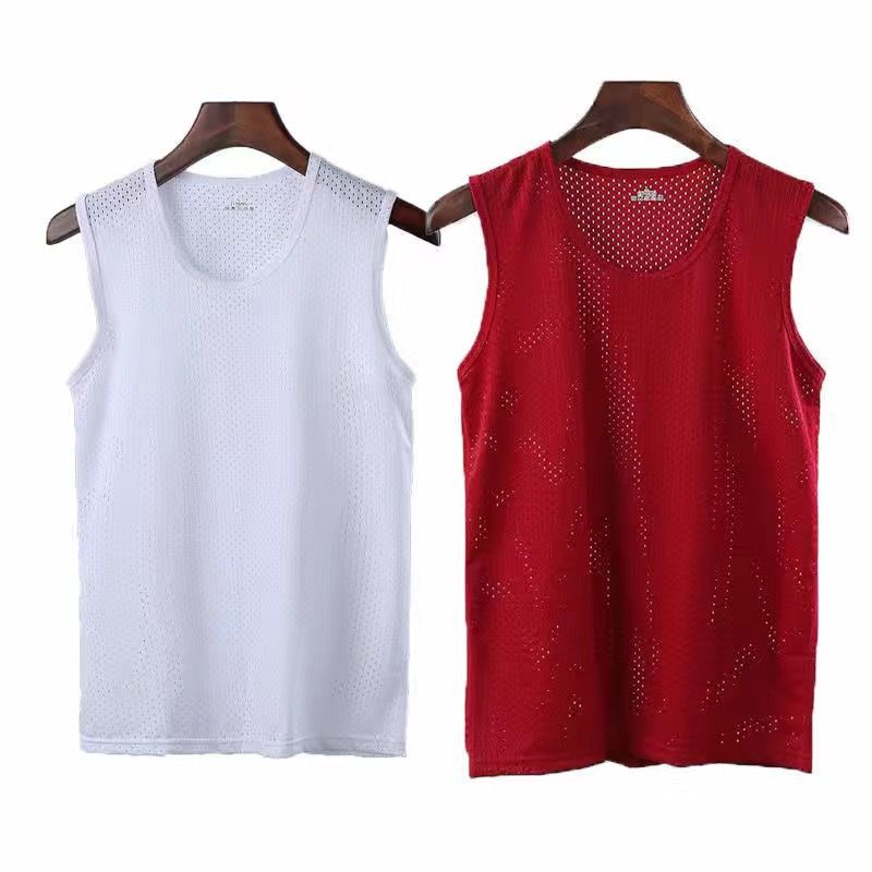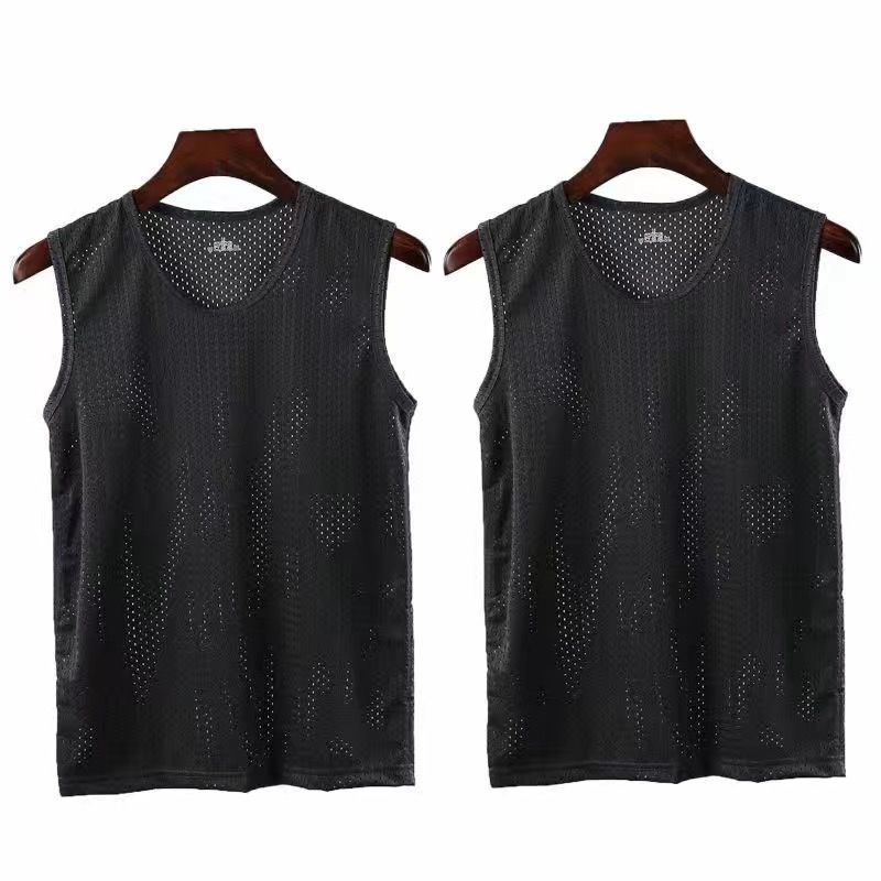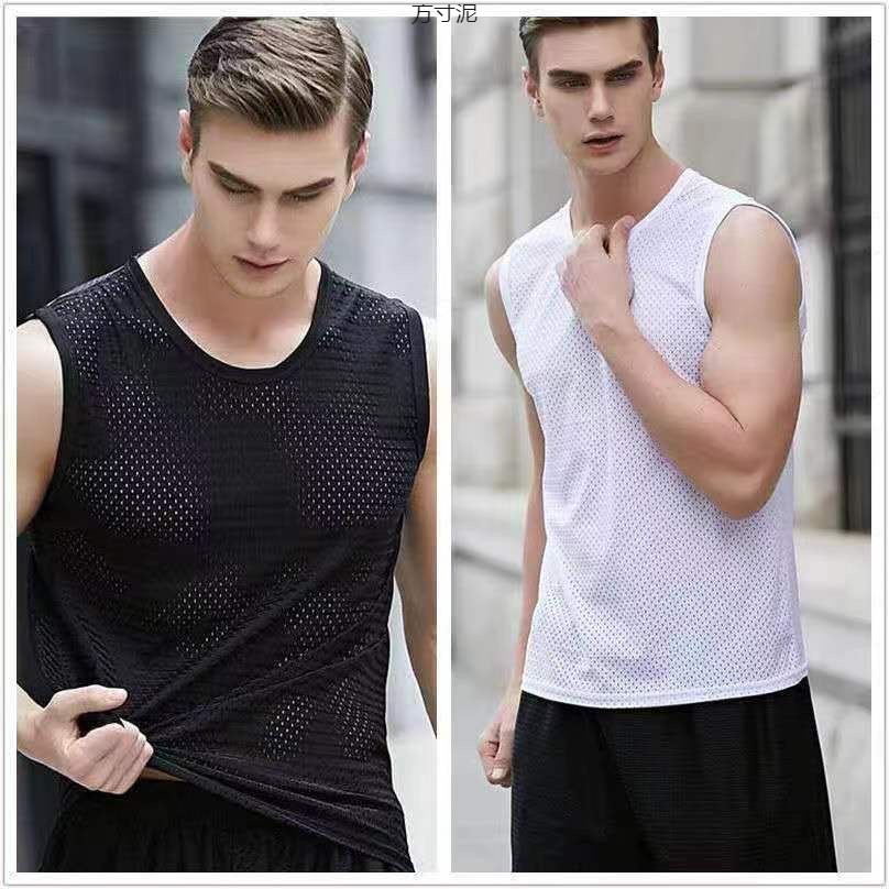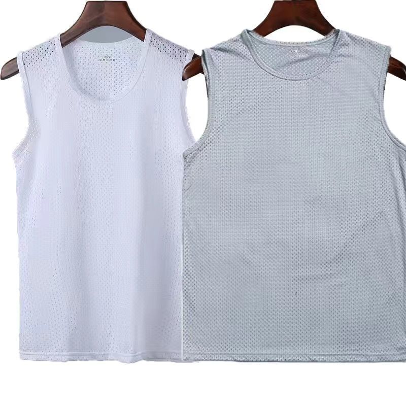 남성용 아이스 실크 할로우 트렌디 메쉬 빠른 건조 조끼 스포츠 슬림 피트니스 언더 셔츠 통기성 기본 셔츠 공장스토어 가기