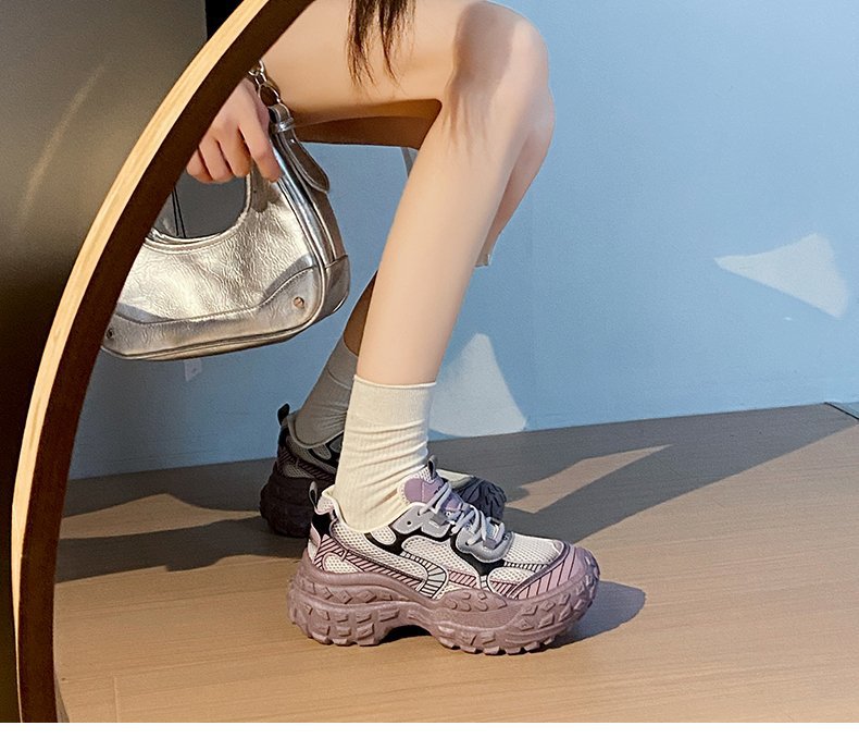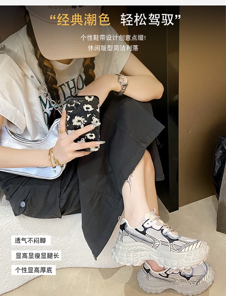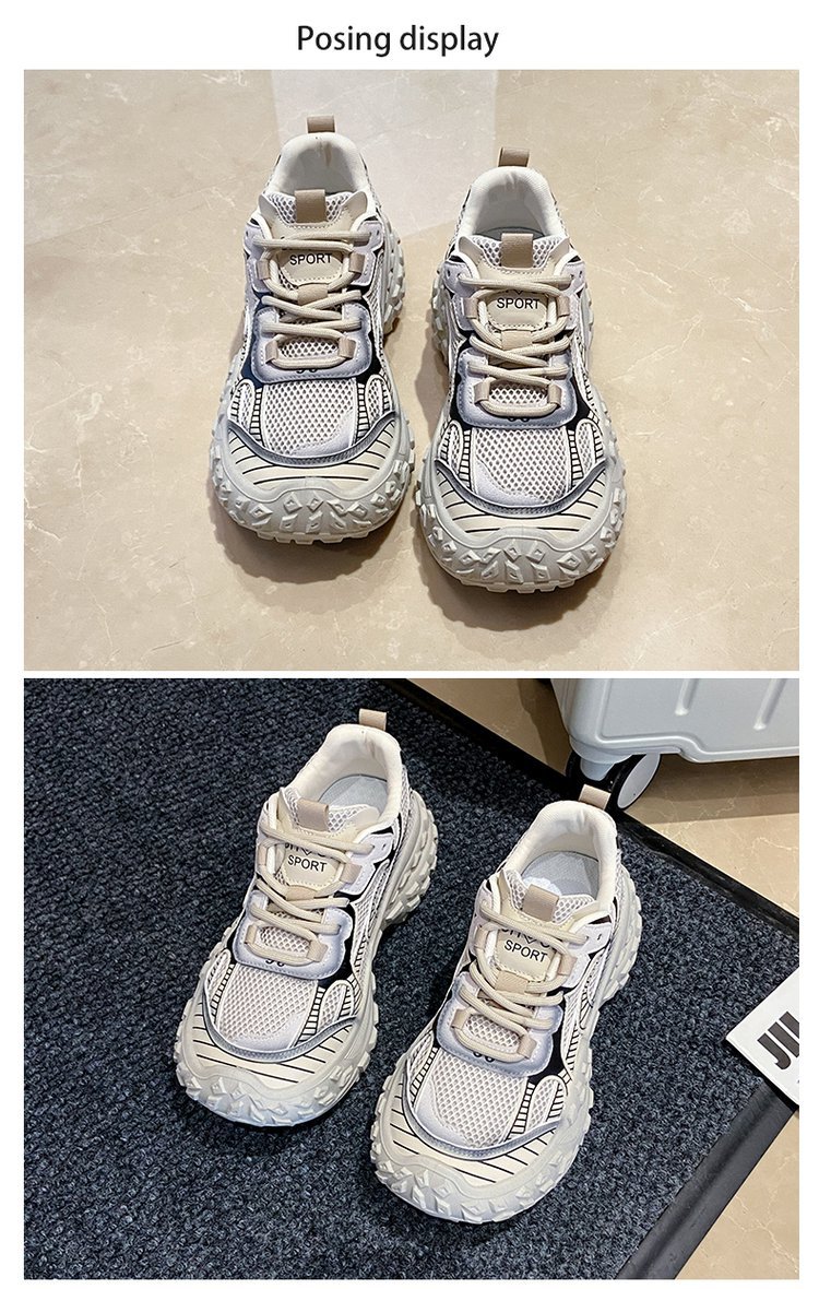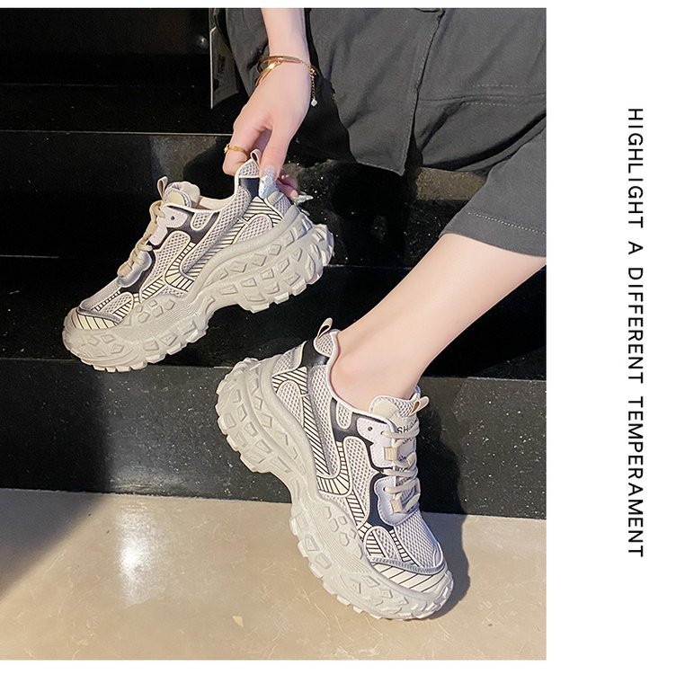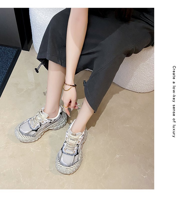 파인애플 두리안 두꺼운 바닥 증가 외국 스타일 슬리밍 메쉬 통기성 토레 신발 여성의 2024 여름 레저 스포츠