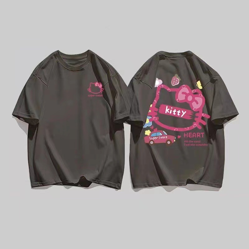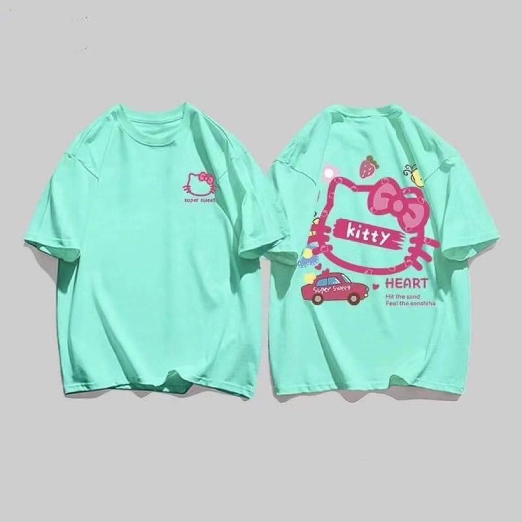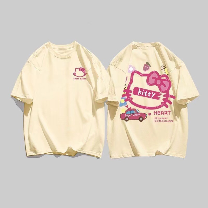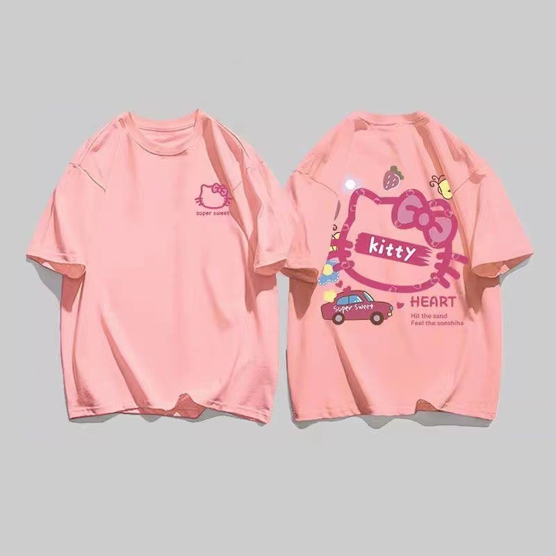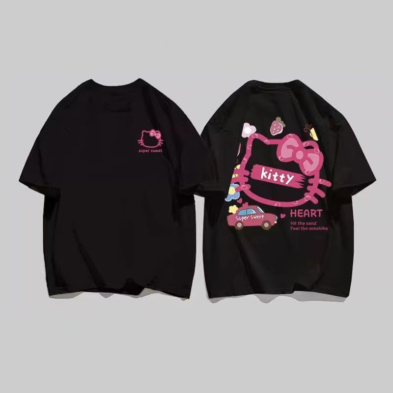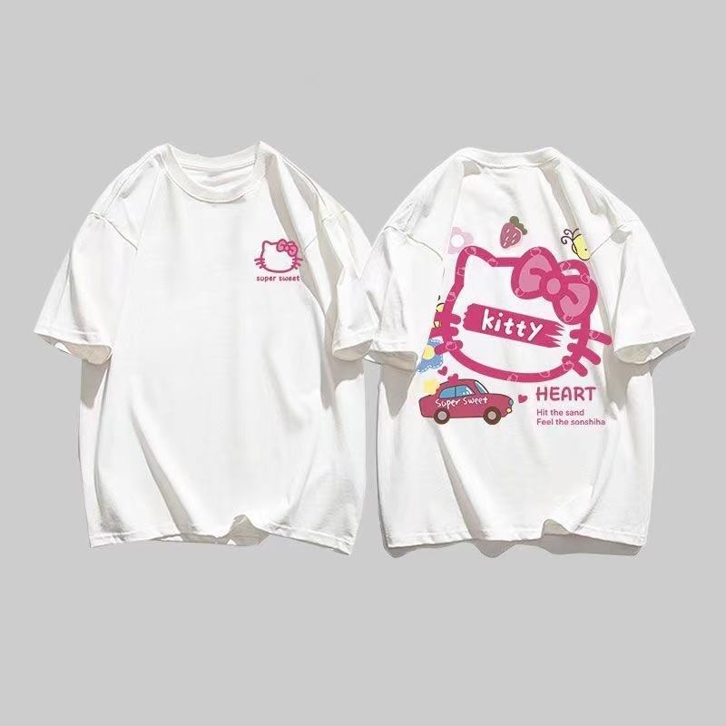 코튼 백 백 칼라 여름 새로운 일본 만화 키티 고양이 반팔 티셔츠 여성용 귀여운 달콤한 루즈 도매스토어 가기