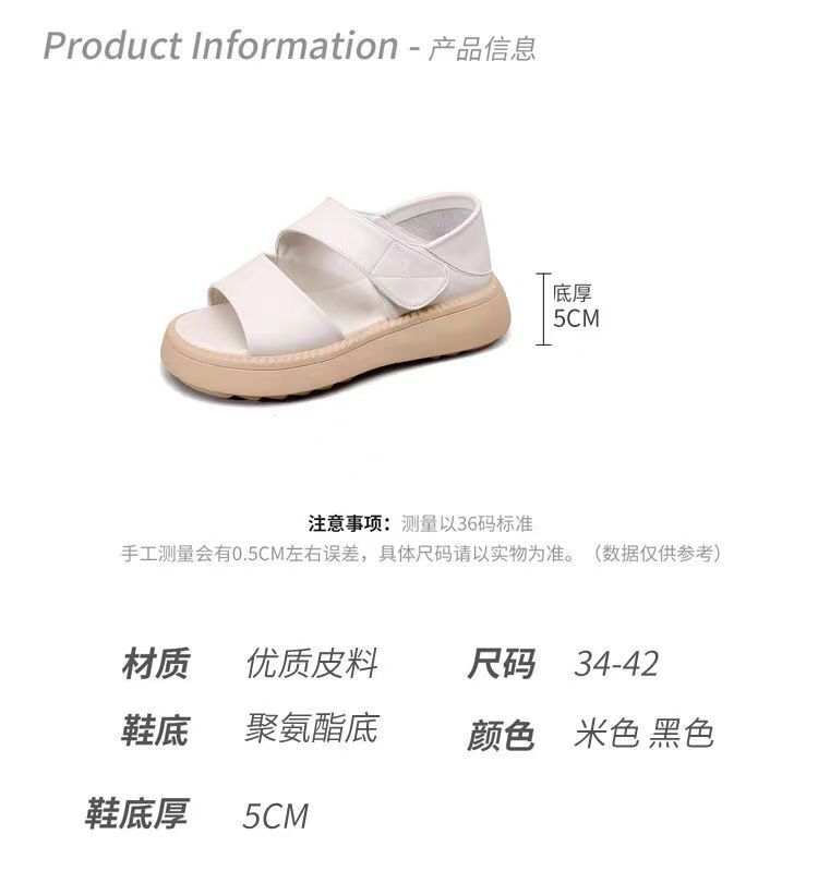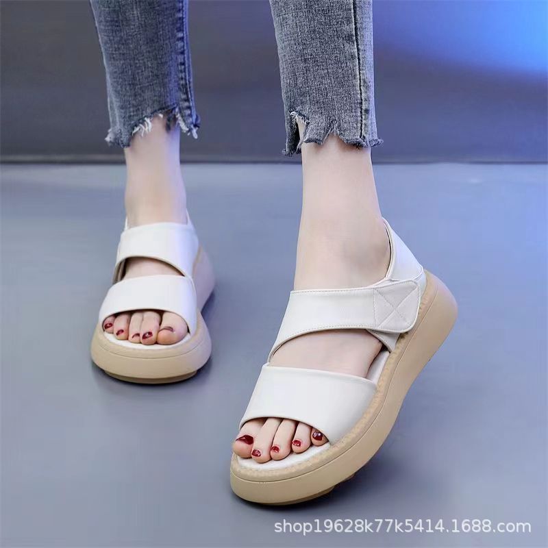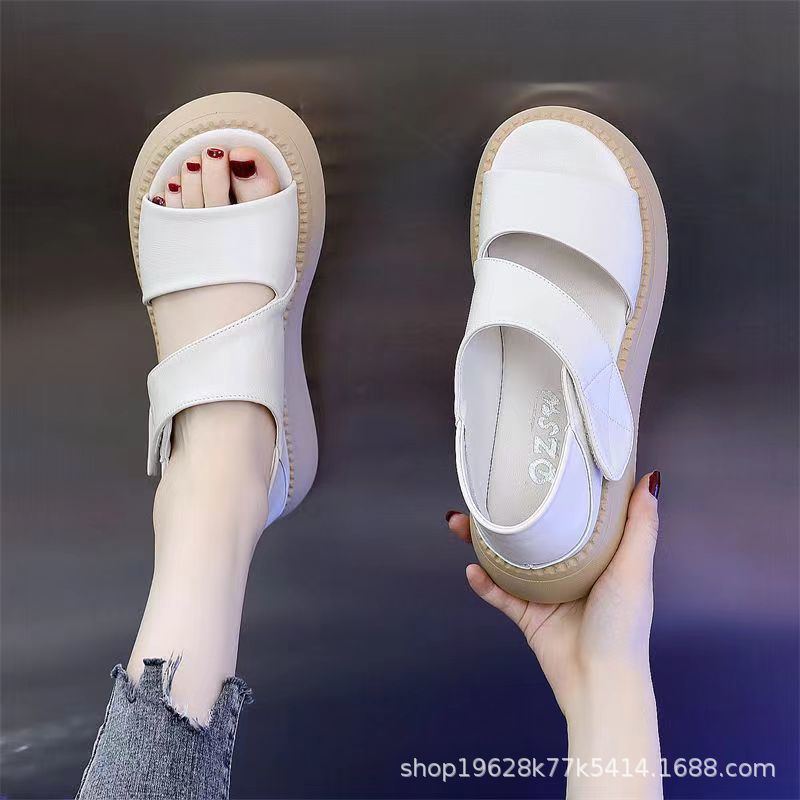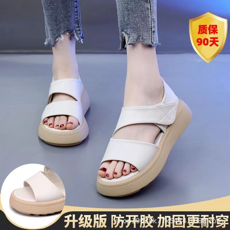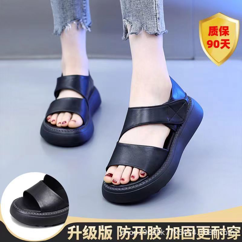 하이 퀄리티 부드러운 가죽 로마 샌들 여성의 2024 새로운 스타일 두꺼운 바닥 슬리밍 캐주얼 소프트 하단 샤넬 스타일 비치 샌들