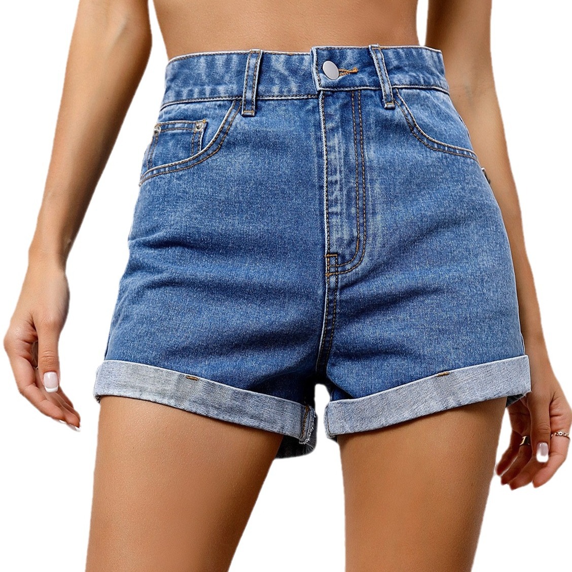 유럽과 미국의 여름 새로운 아마존, 국경 간 대외 무역 여성 데님 반바지 2024 높은 허리 슬리밍 넓은 다리 바지스토어 가기