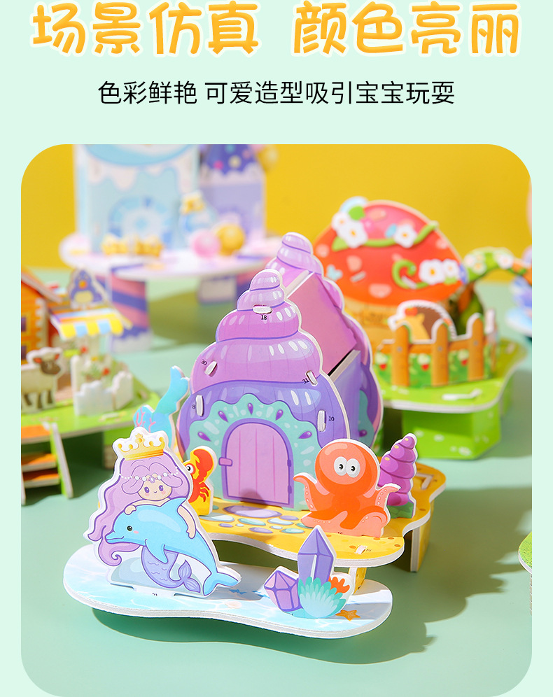 3D 3 차원 퍼즐 카드 학생 DIY 수동 조립지도 어린이 조기 교육 접합 장난감 마구간 스몰 사이즈 접합지도스토어 가기