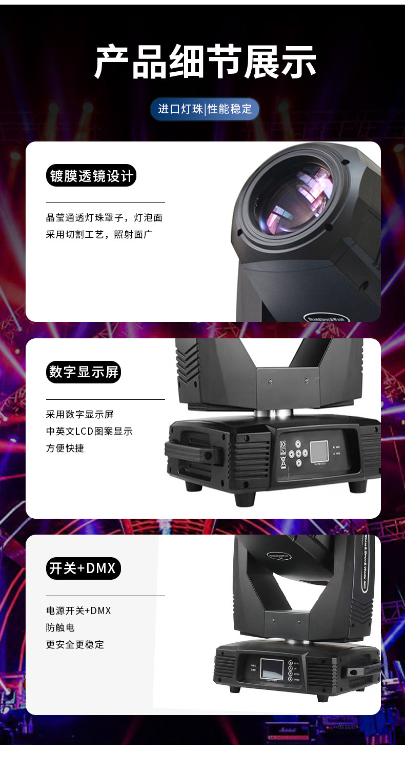 350W 3-in-one 패턴 스포트라이트 웨딩 연회 회전 빔 라이트 바 무대 라이브 방송실 이동 헤드 배경 조명스토어 가기