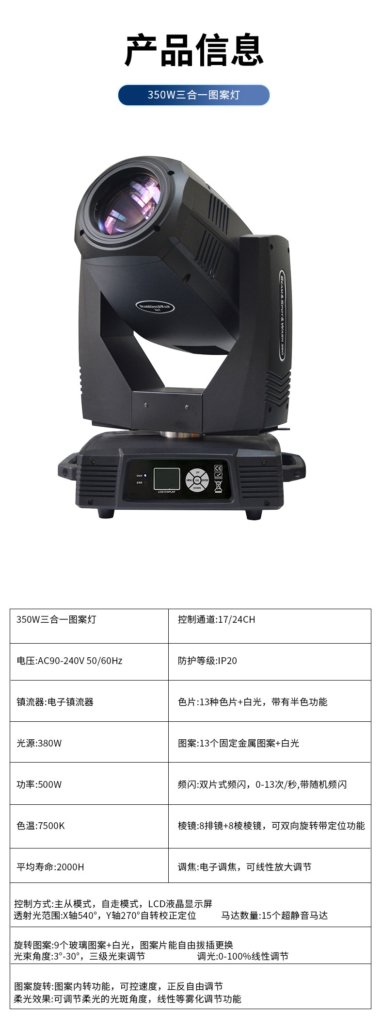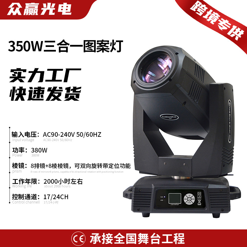 350W 3-in-one 패턴 스포트라이트 웨딩 연회 회전 빔 라이트 바 무대 라이브 방송실 이동 헤드 배경 조명