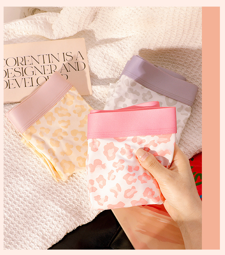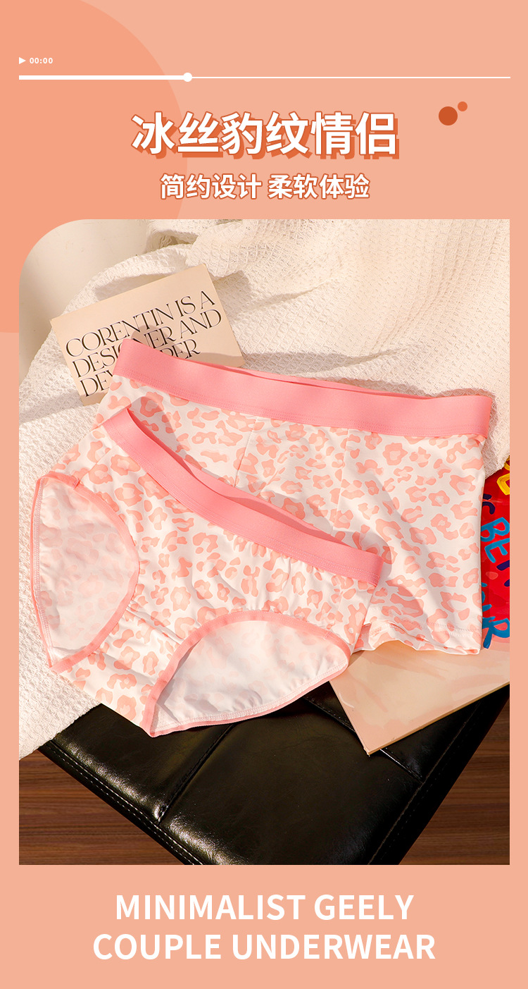 남녀 커플용 레오파드 프린트 남성 사각팬티 여성 삼각팬티 아이스 실크 중간 허리 프린트 통기성 여름 반바지스토어 가기