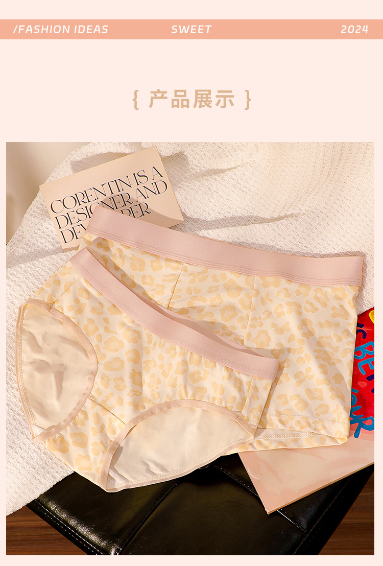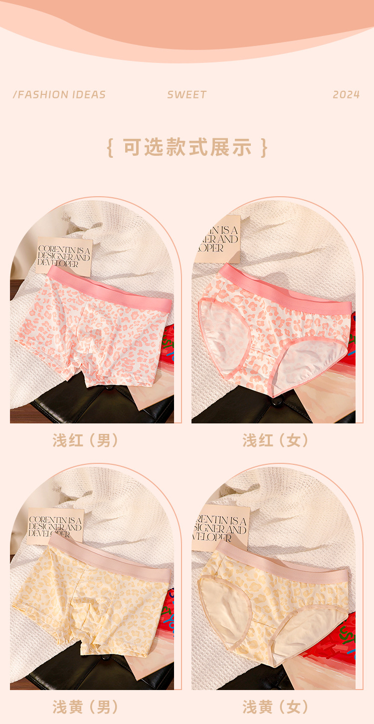 남녀 커플용 레오파드 프린트 남성 사각팬티 여성 삼각팬티 아이스 실크 중간 허리 프린트 통기성 여름 반바지