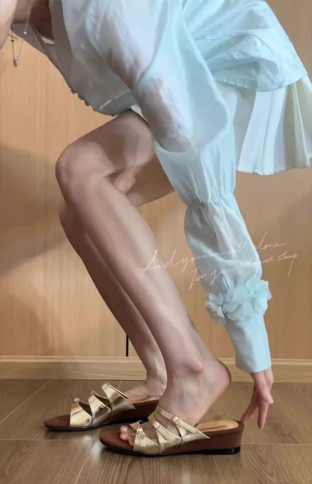 2024 새로운 여름 라운드 헤드 웨지 샌들 여성 레트로 소프트 가죽 웨지 벨트 버클 오픈 발가락 슬리퍼 여성 도매