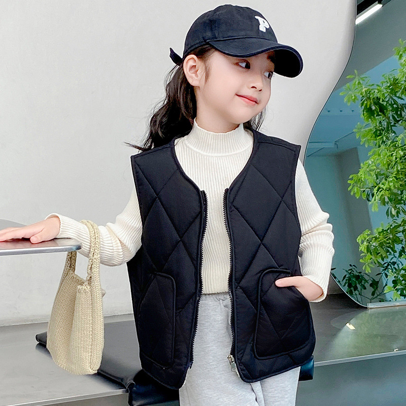 2024 가을 겨울 조끼 새로운 어린이 한국 스타일 소년 소녀 조끼 조끼를 입고 세련된 웨이스트 코트