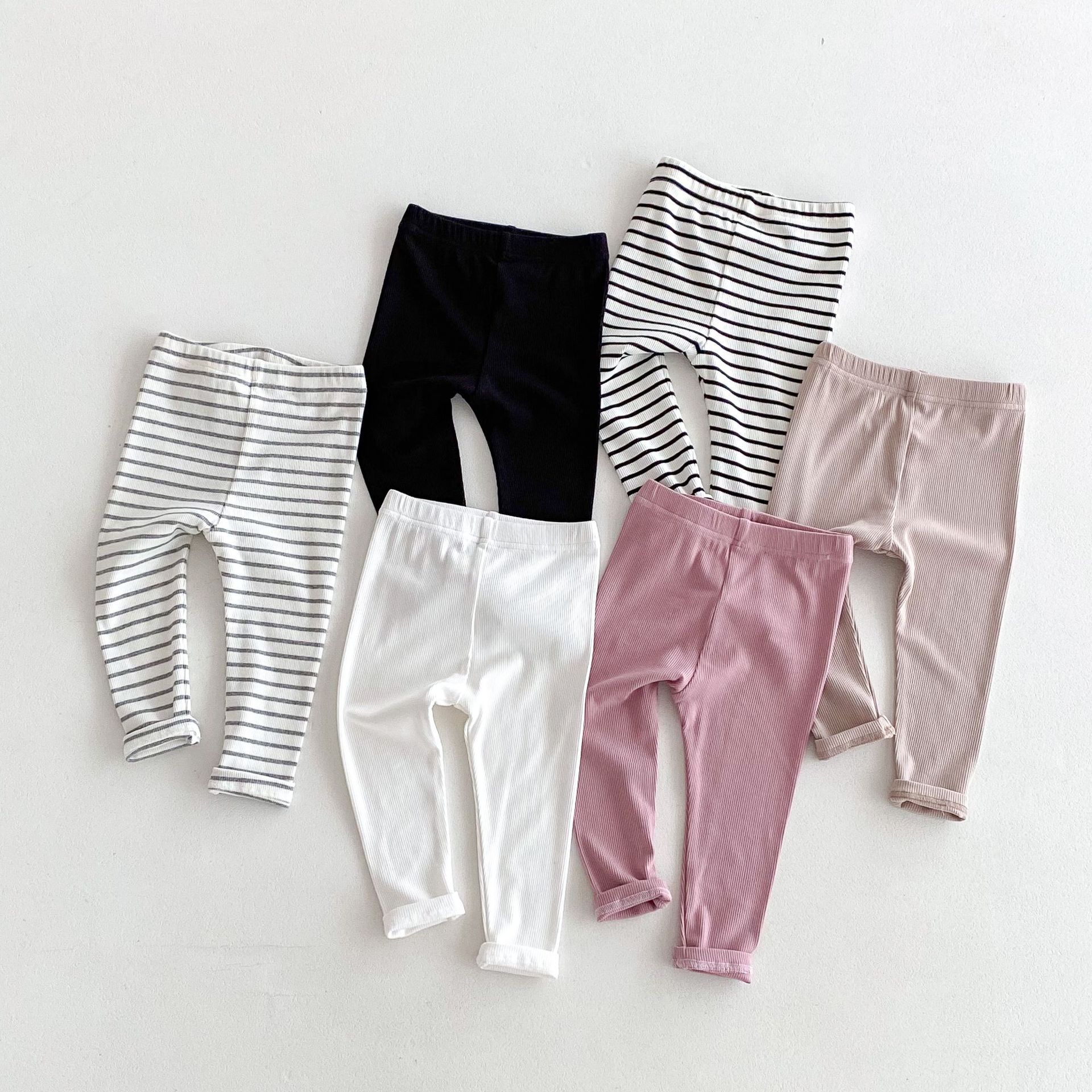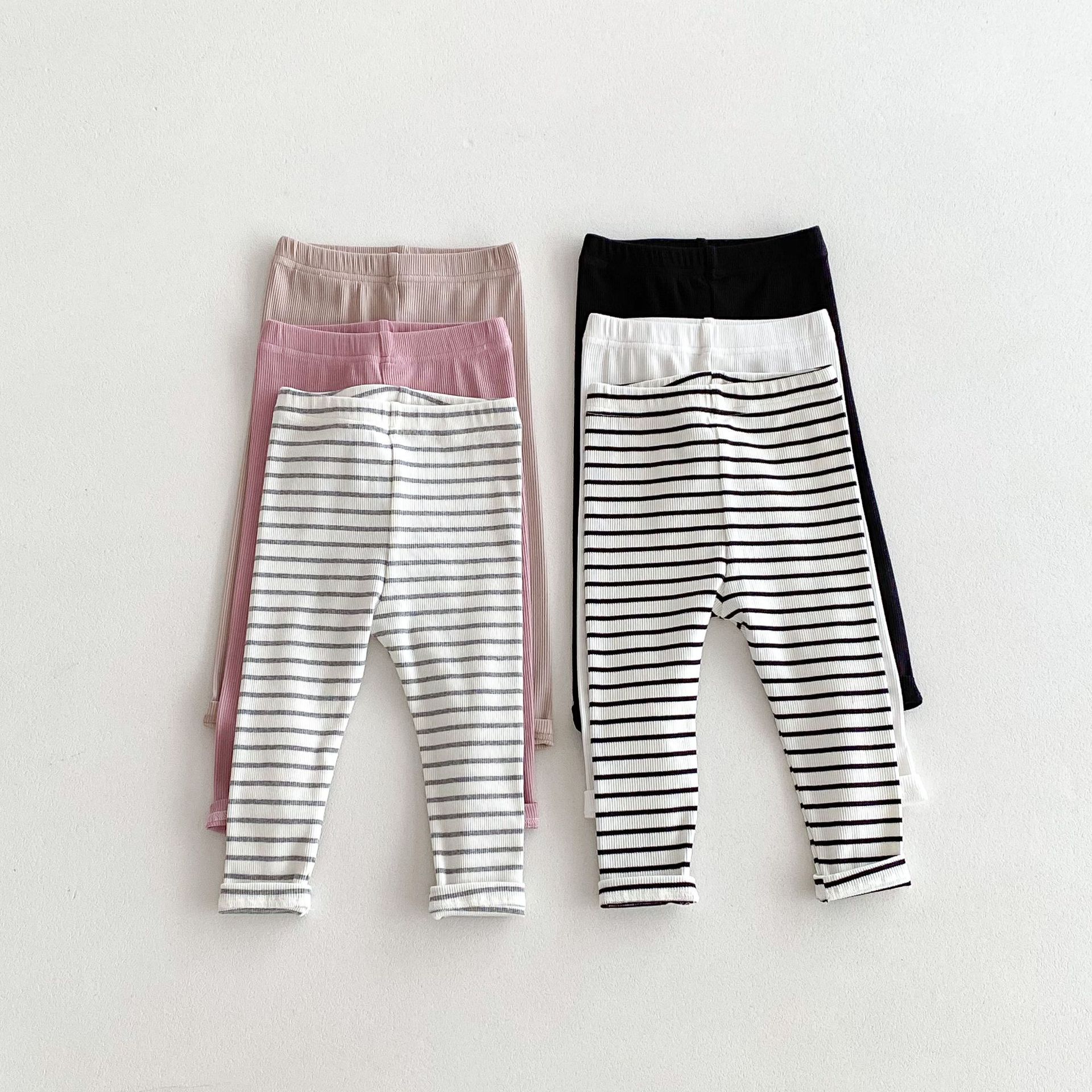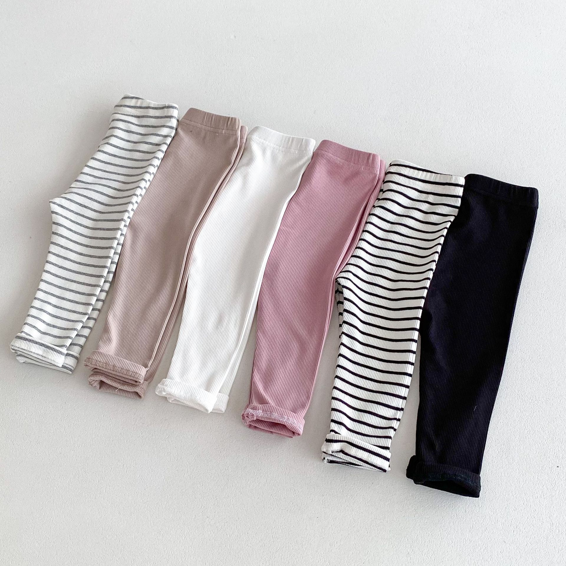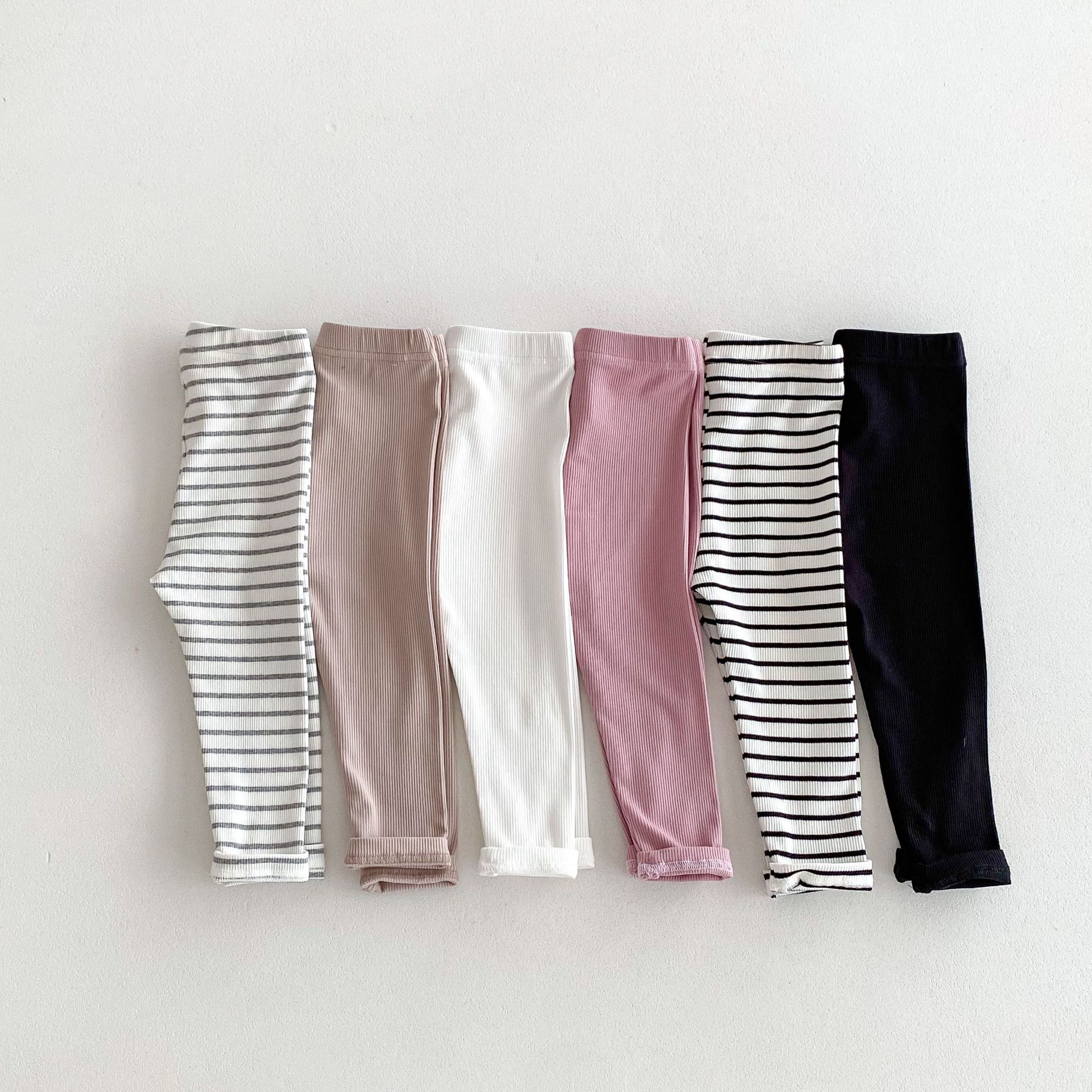 2026년 가을 신상품 아동용 한국 스타일 바지 스트라이프 면 신축성 타이트 레깅스 내외 착용 가능 긴바지스토어 가기