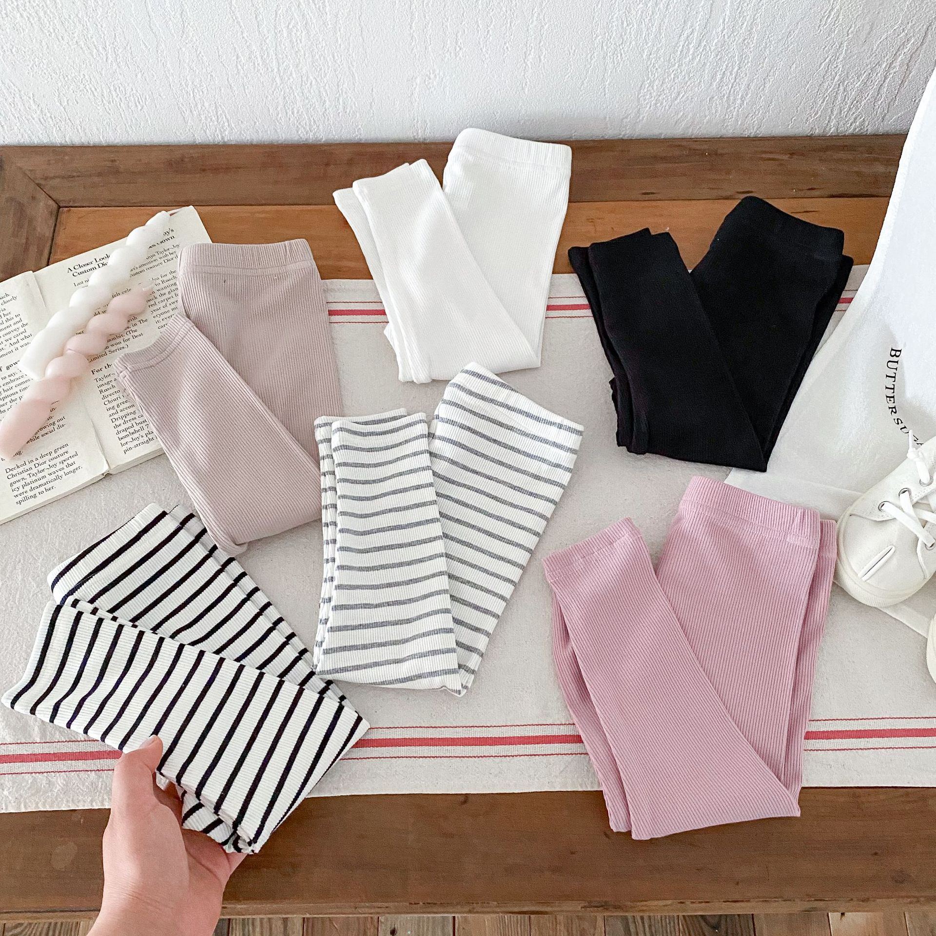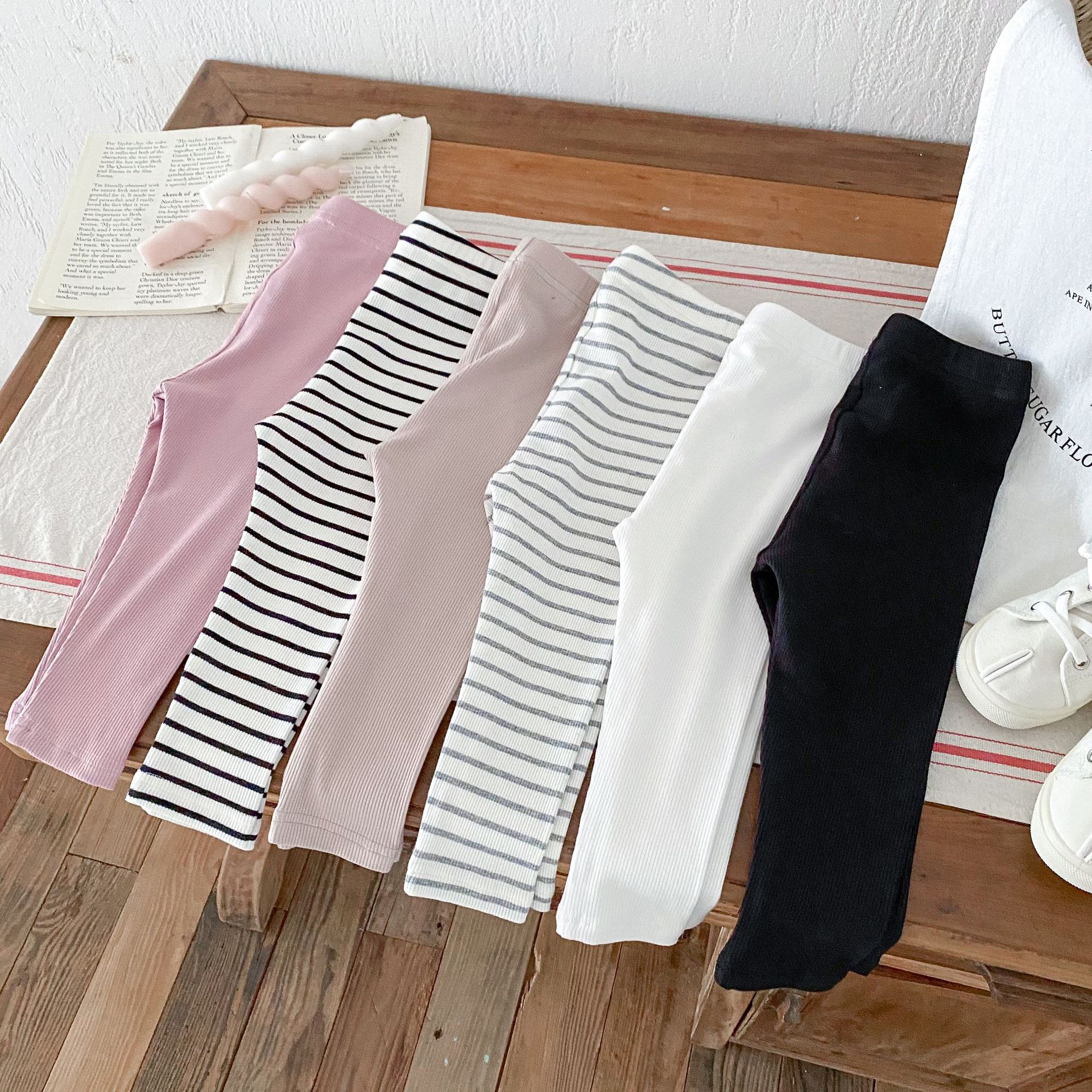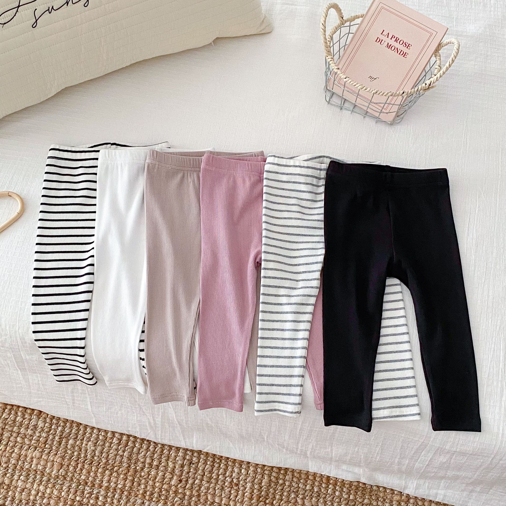 2026년 가을 신상품 아동용 한국 스타일 바지 스트라이프 면 신축성 타이트 레깅스 내외 착용 가능 긴바지스토어 가기