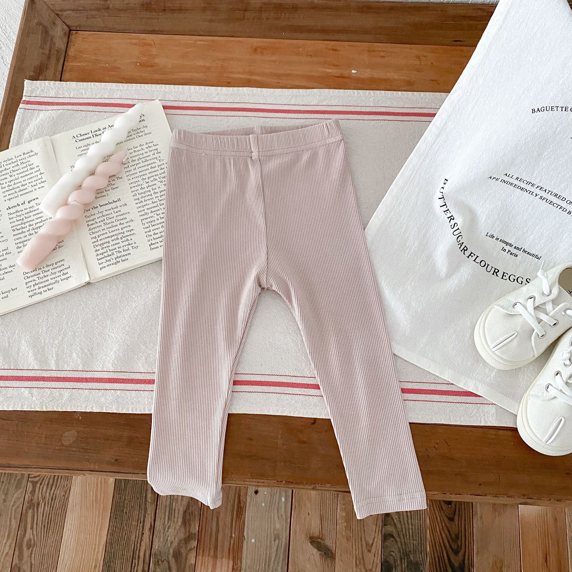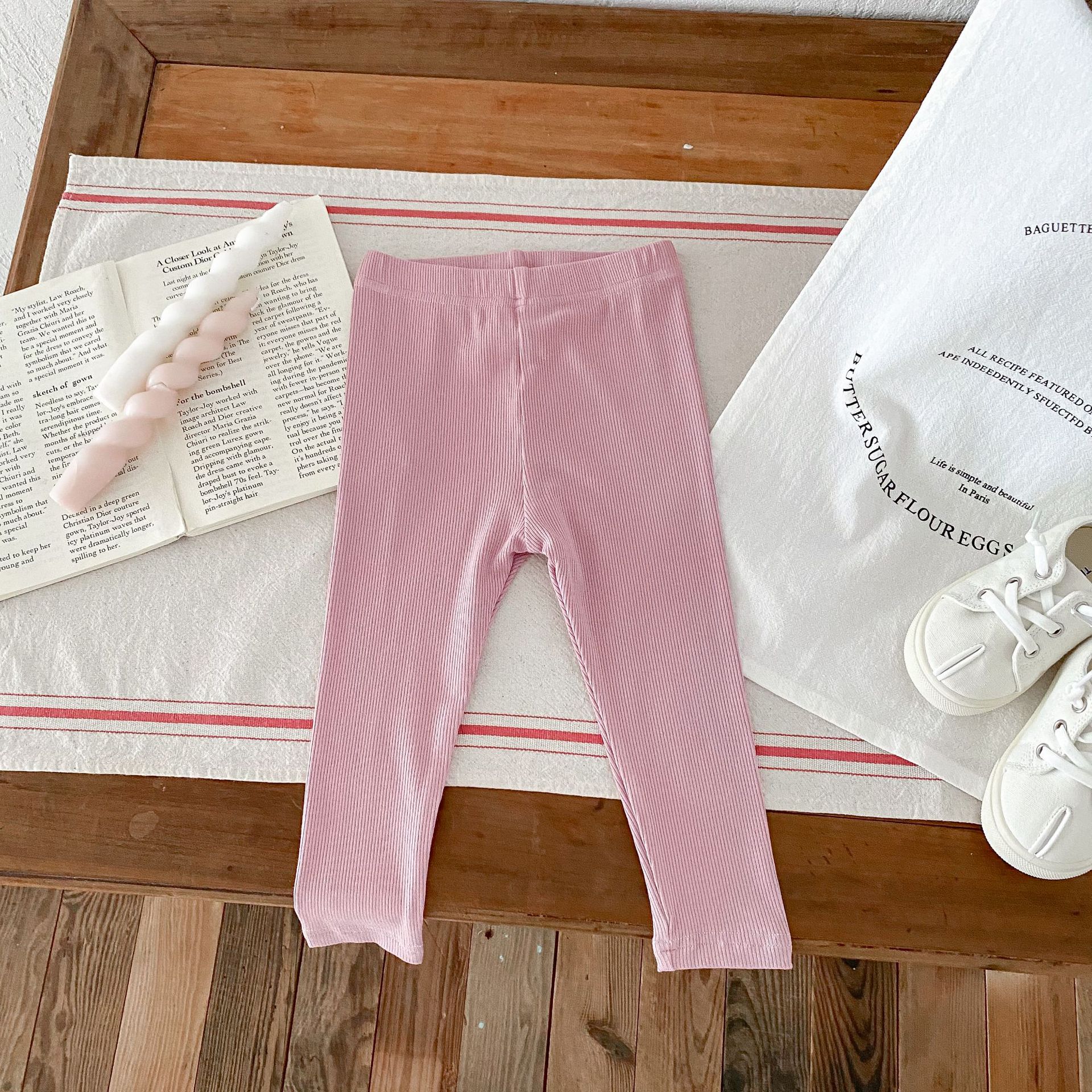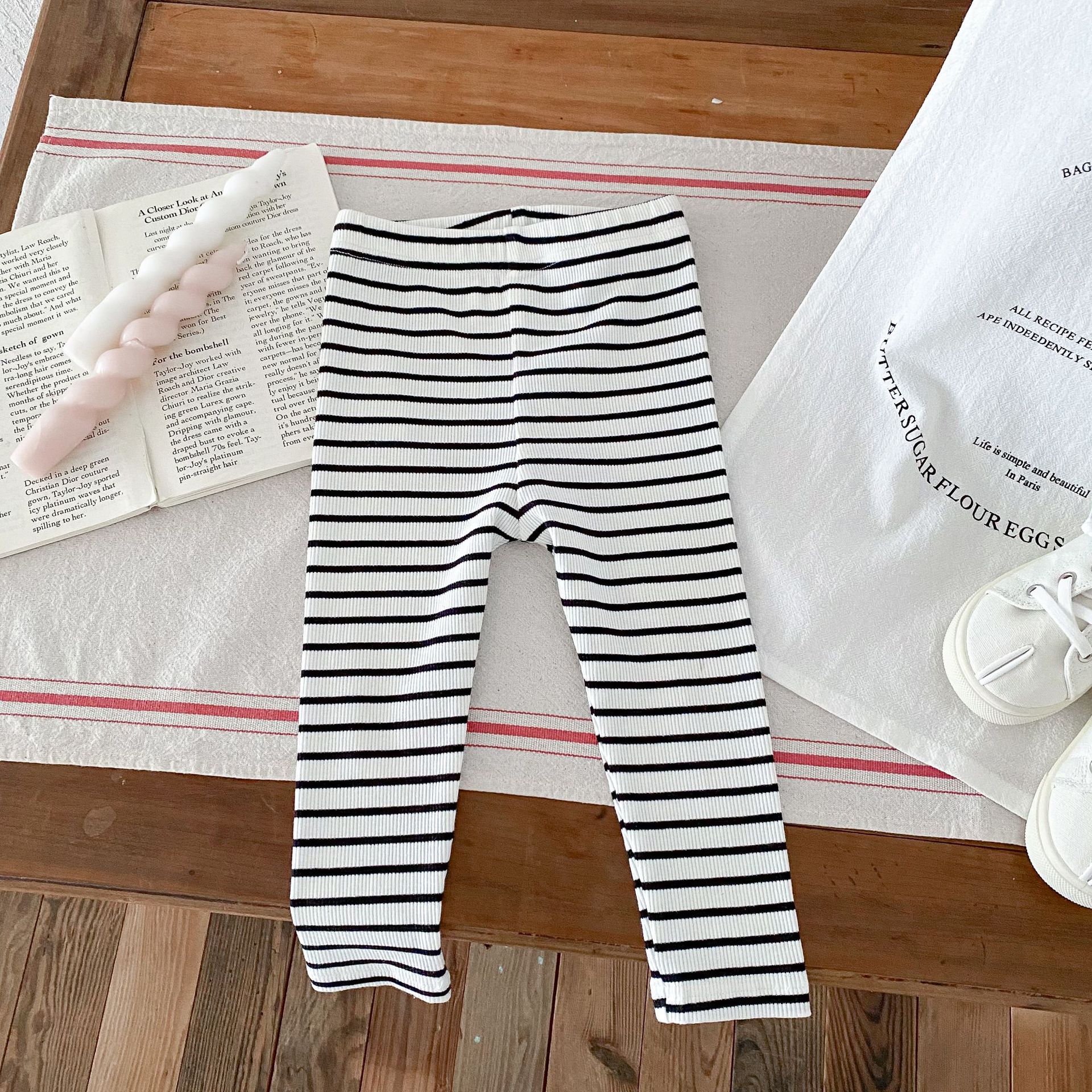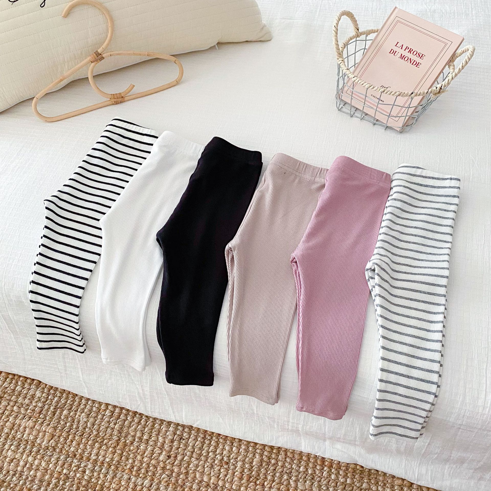 2026년 가을 신상품 아동용 한국 스타일 바지 스트라이프 면 신축성 타이트 레깅스 내외 착용 가능 긴바지스토어 가기