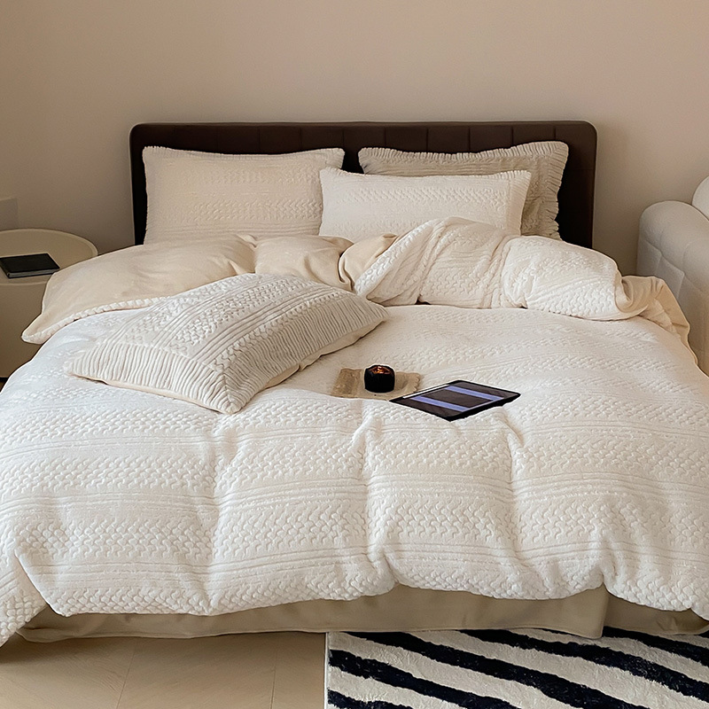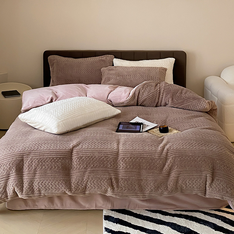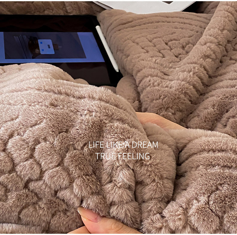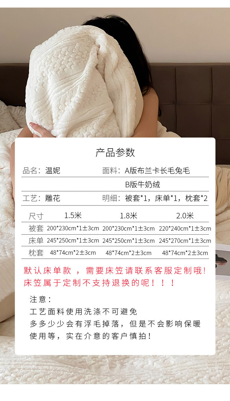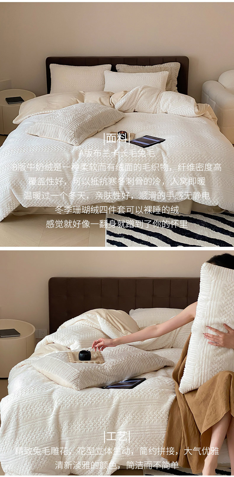 가을과 겨울 두꺼운 블랑카 봉제 토끼 4 종 세트 가벼운 럭셔리 조각 따뜻한 우유 벨벳 이불 커버 침구