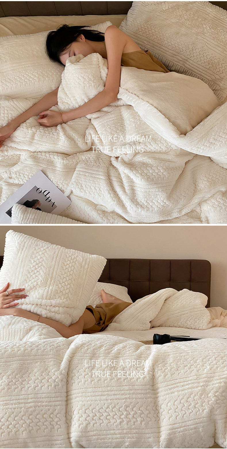 가을과 겨울 두꺼운 블랑카 봉제 토끼 4 종 세트 가벼운 럭셔리 조각 따뜻한 우유 벨벳 이불 커버 침구스토어 가기