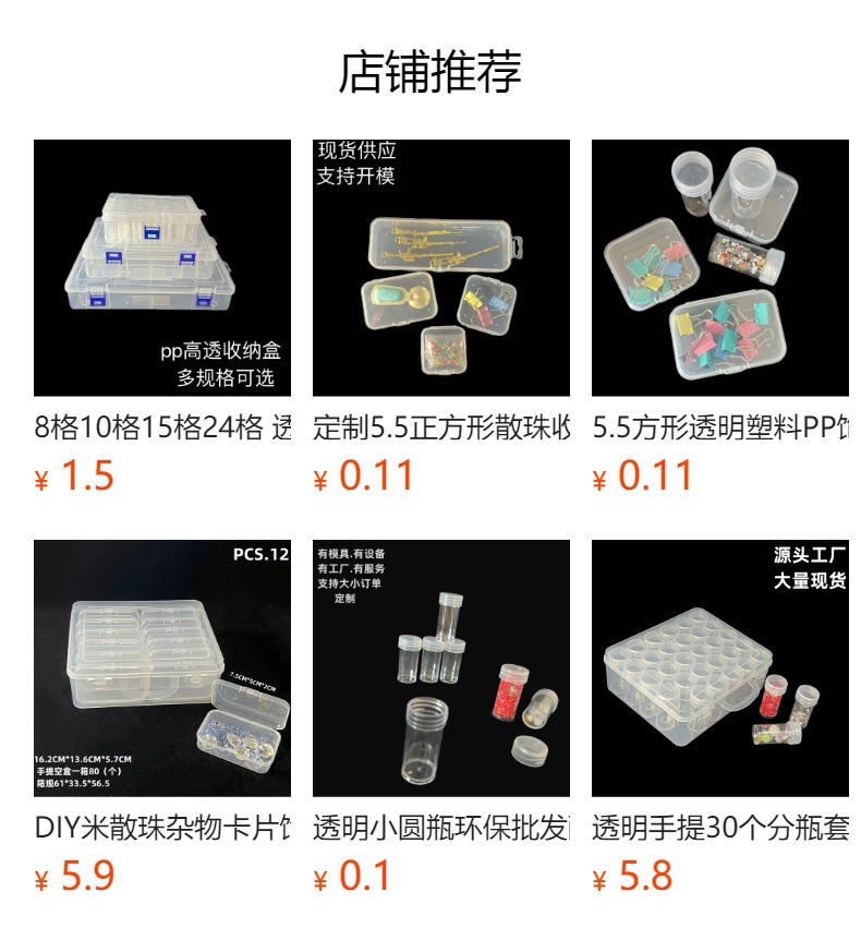 핫세일 PP 고투명 5.5 작은 사각 박스 14칸 세트 박스 네일아트 비즈 낚시용품 웨어러블 네일 보관함스토어 가기