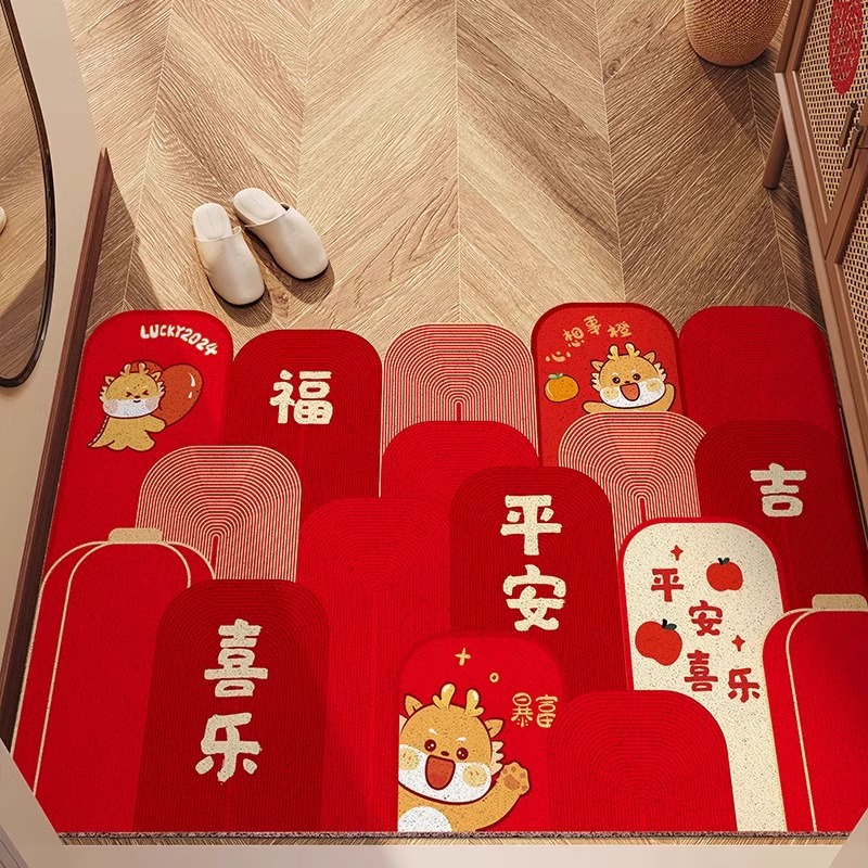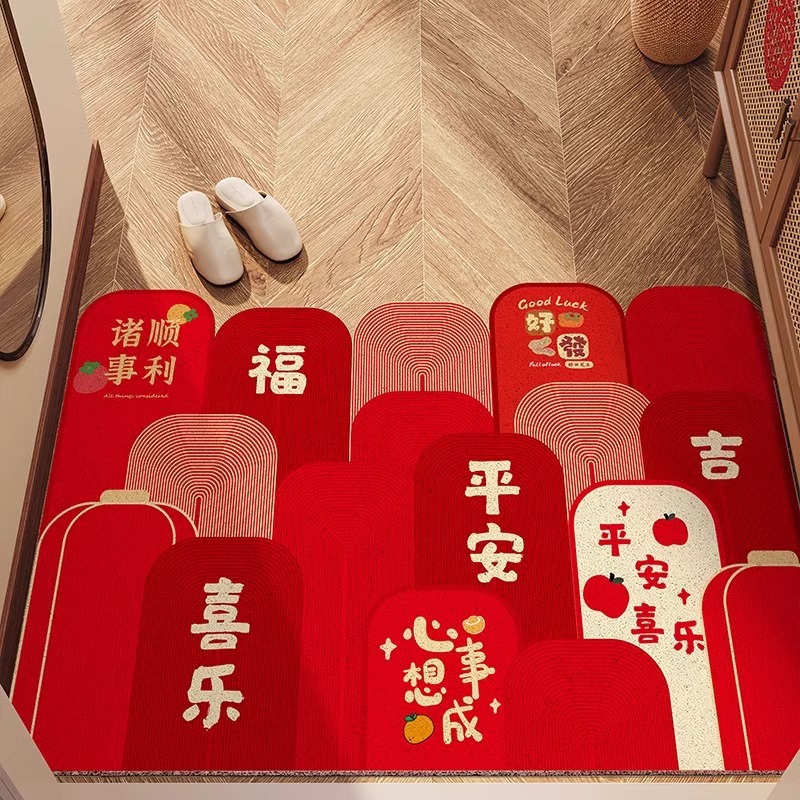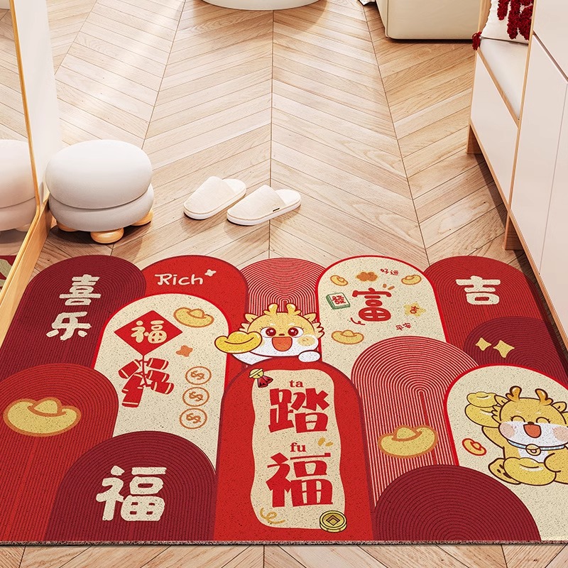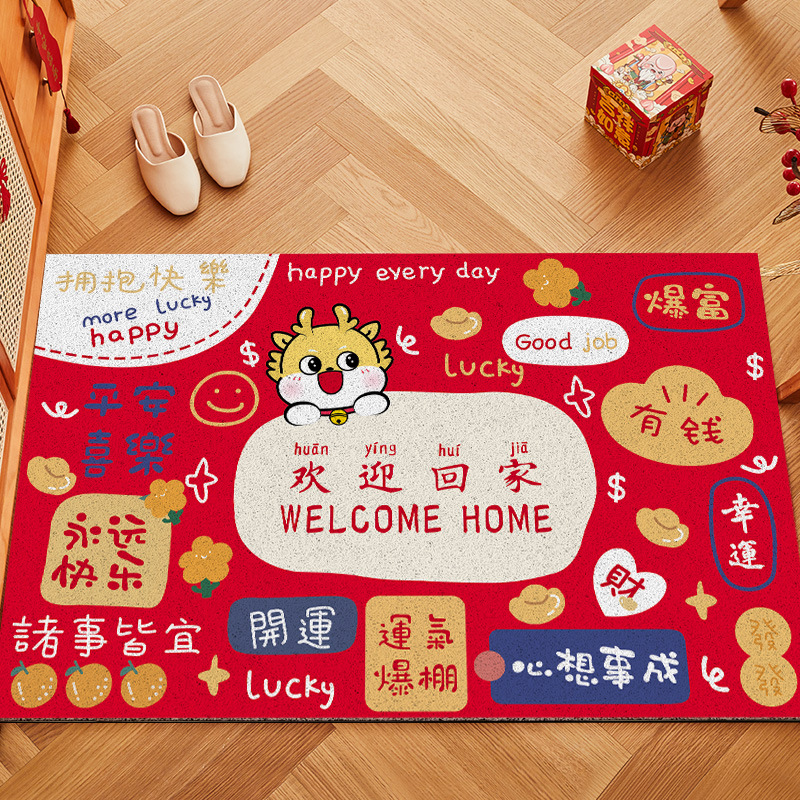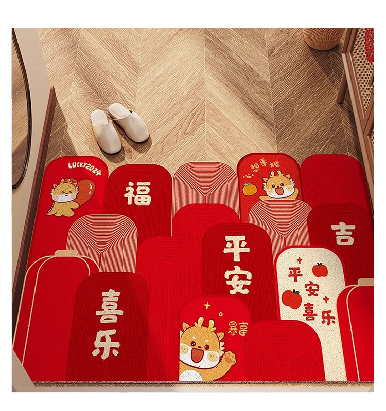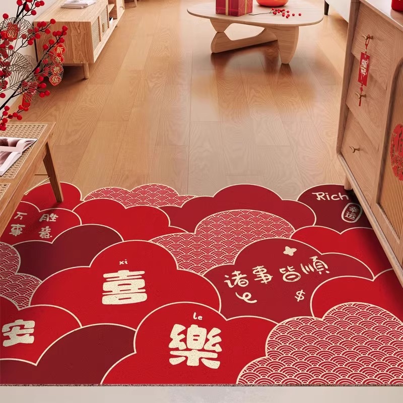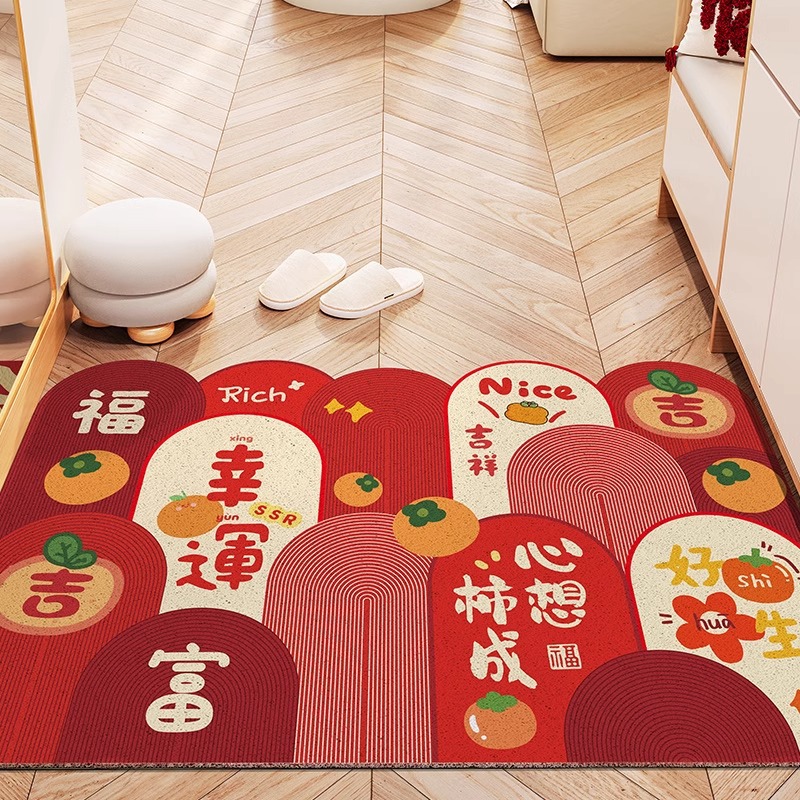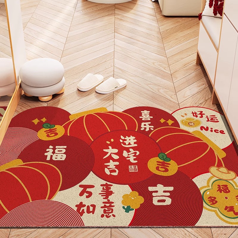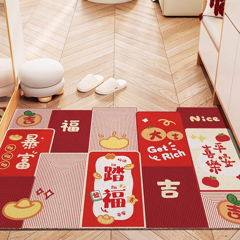 빨간 실크 링 바닥 매트 문 내재성 내마모성 바닥 매트를 긁어 진흙을 문지르는 흙을 긁는 것은 미끄럼 방지 매트를 머리카락 세대로자를 수 있습니다.스토어 가기