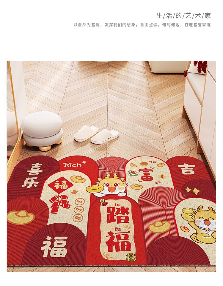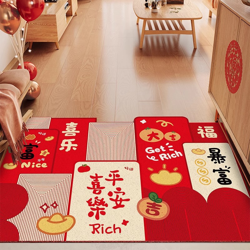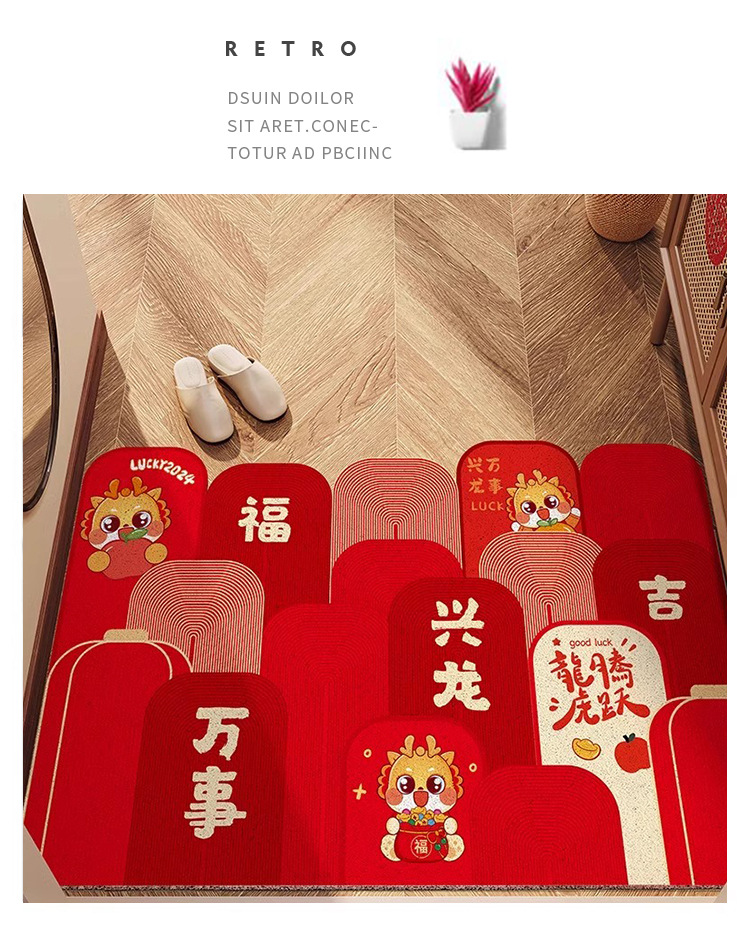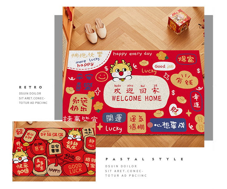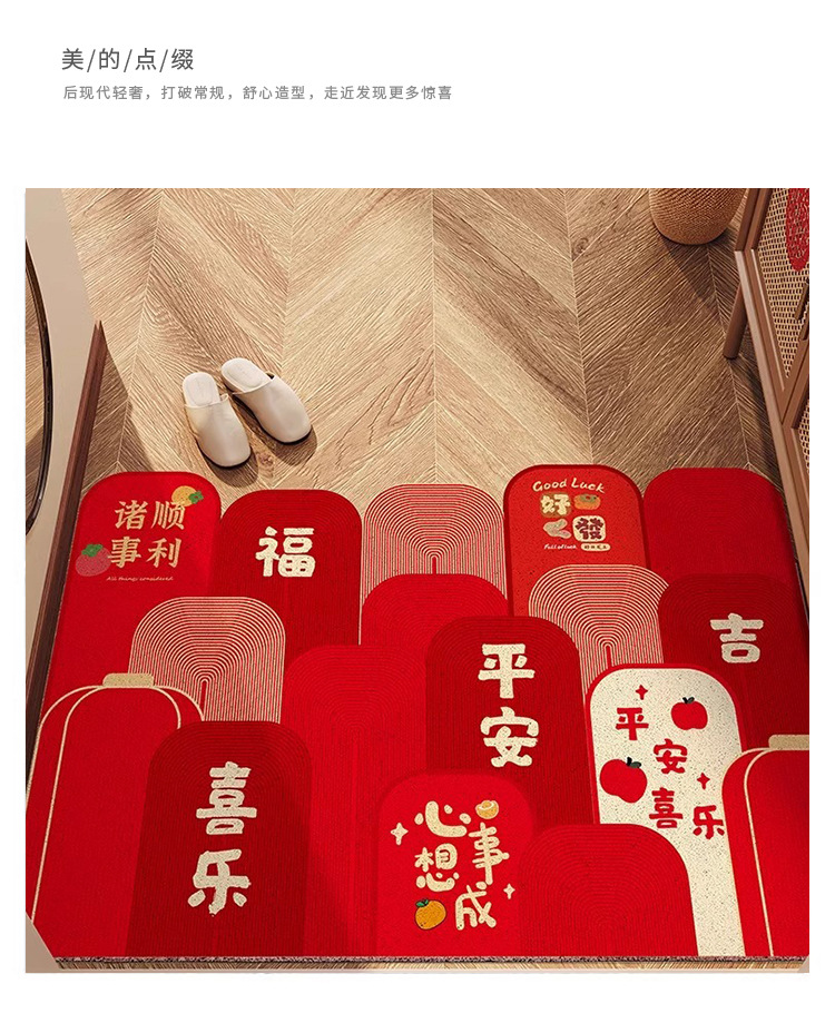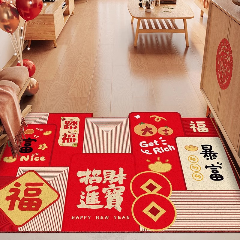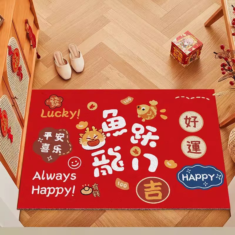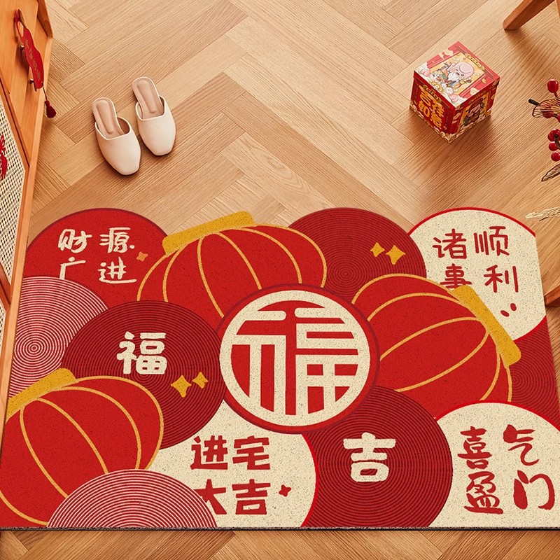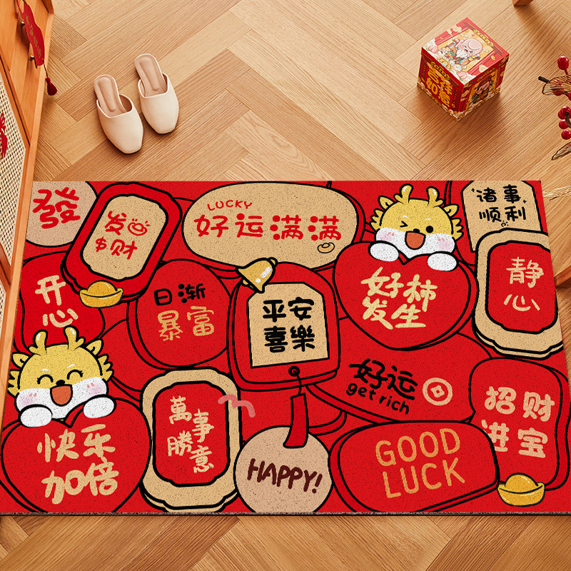 빨간 실크 링 바닥 매트 문 내재성 내마모성 바닥 매트를 긁어 진흙을 문지르는 흙을 긁는 것은 미끄럼 방지 매트를 머리카락 세대로자를 수 있습니다.스토어 가기