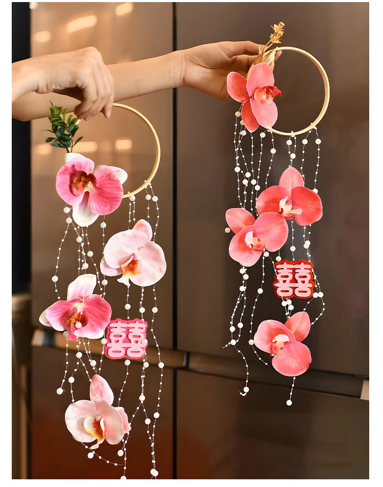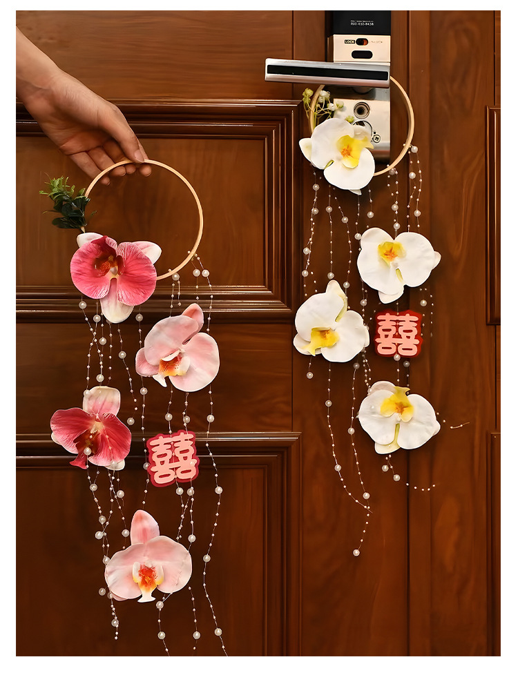 웨딩 호접란 문 교수형 휴대용 웨딩 룸 장식 교수형 웨딩 룸 거실 문 손잡이 교수형 장식품 사진 소품스토어 가기