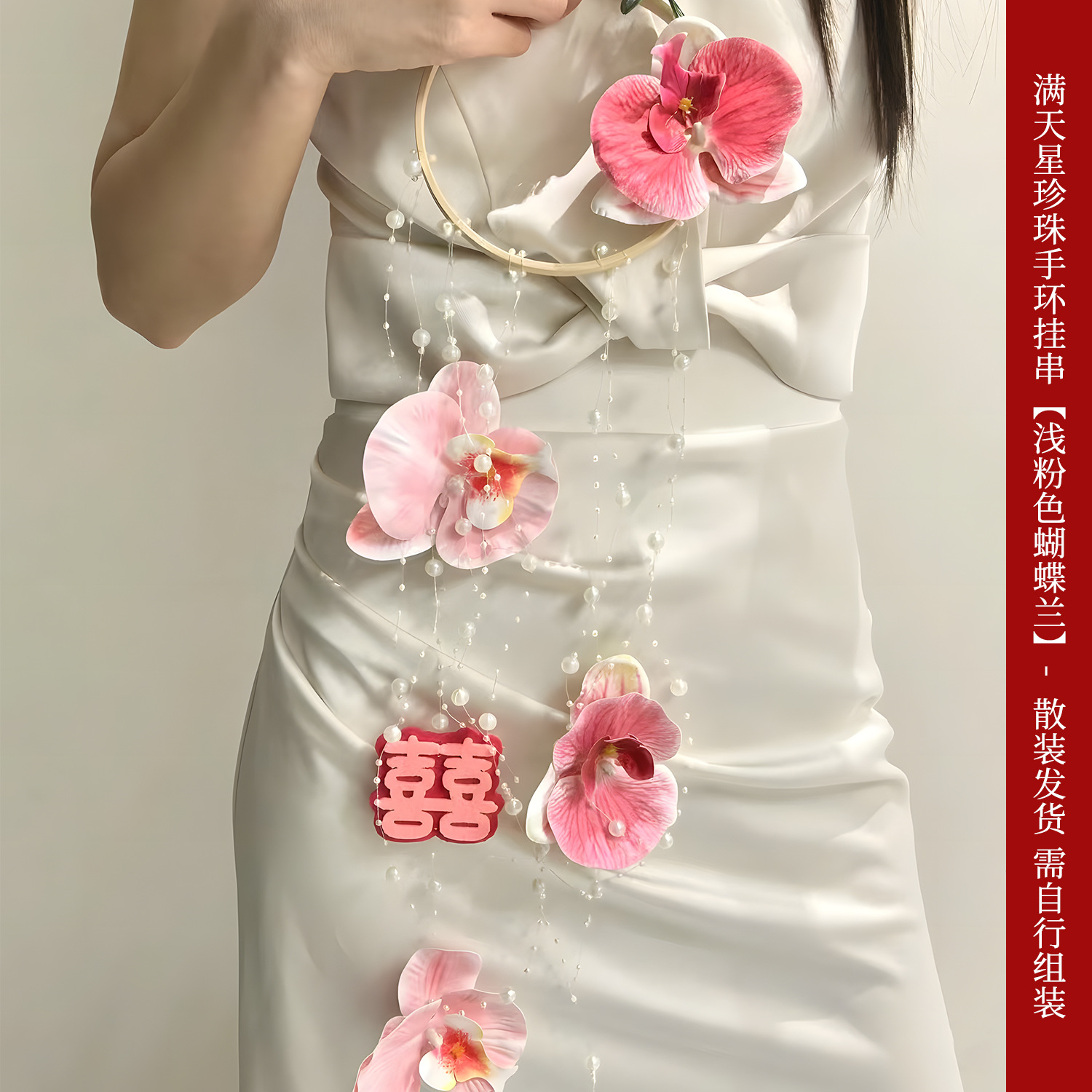 • Gypsophila 진주 팔찌 끈 "빛 핑크 호접란]