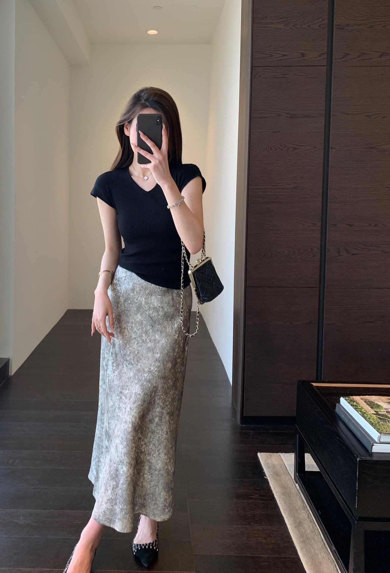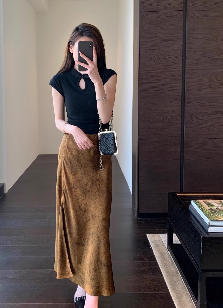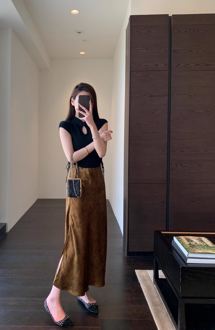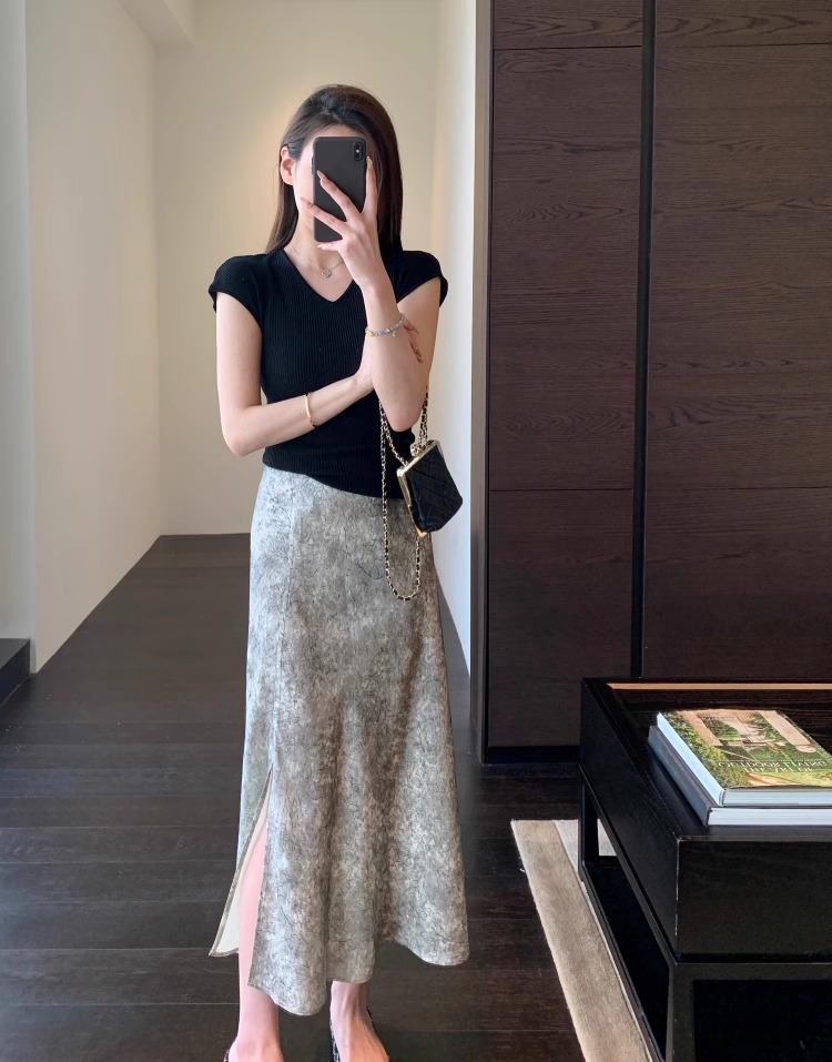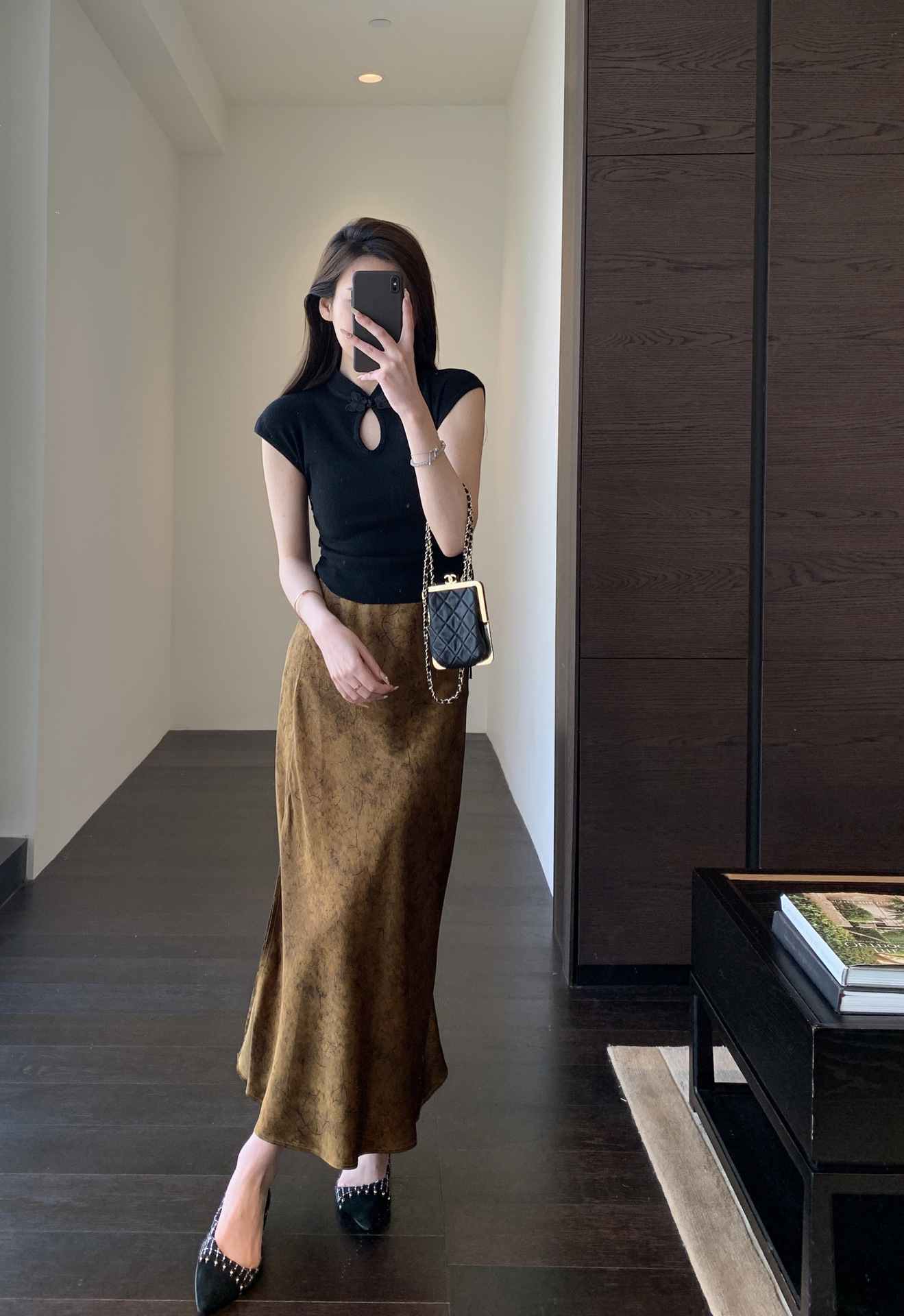 무거운 추천 새로운 중국 주름 아세테이트 새틴 Fishtail 스커트 높은 허리 슬리밍 쉬스 스플릿 여성용 스커트