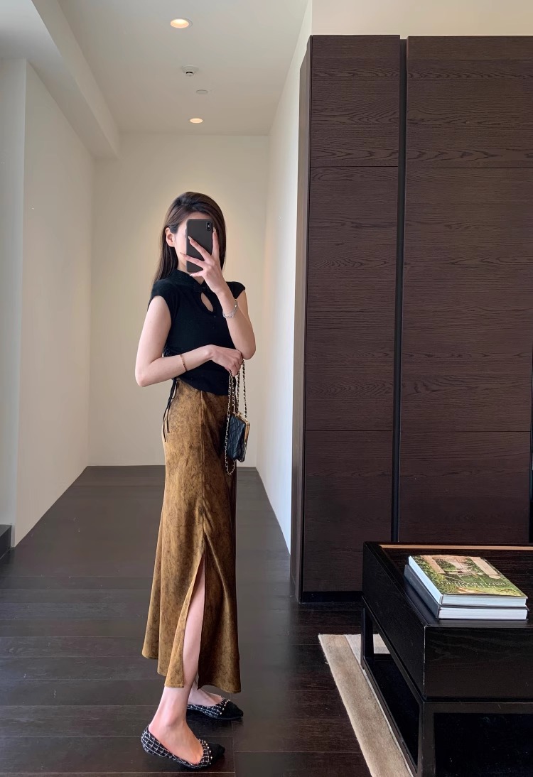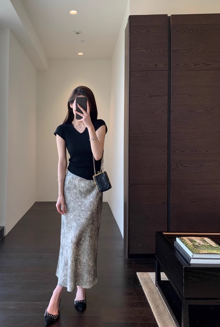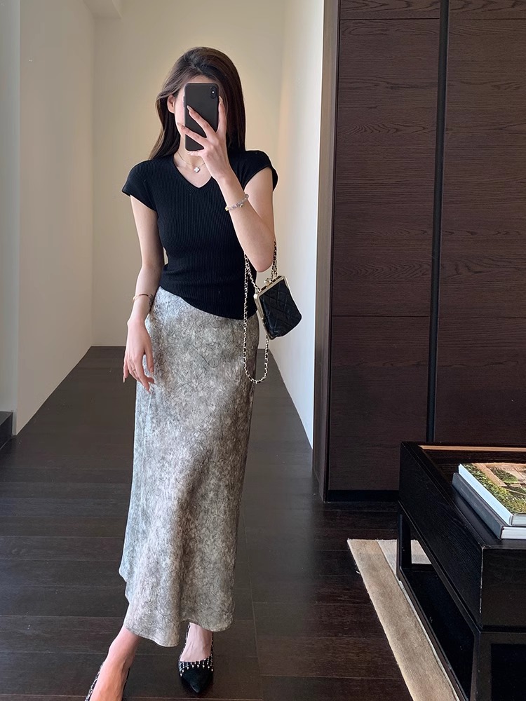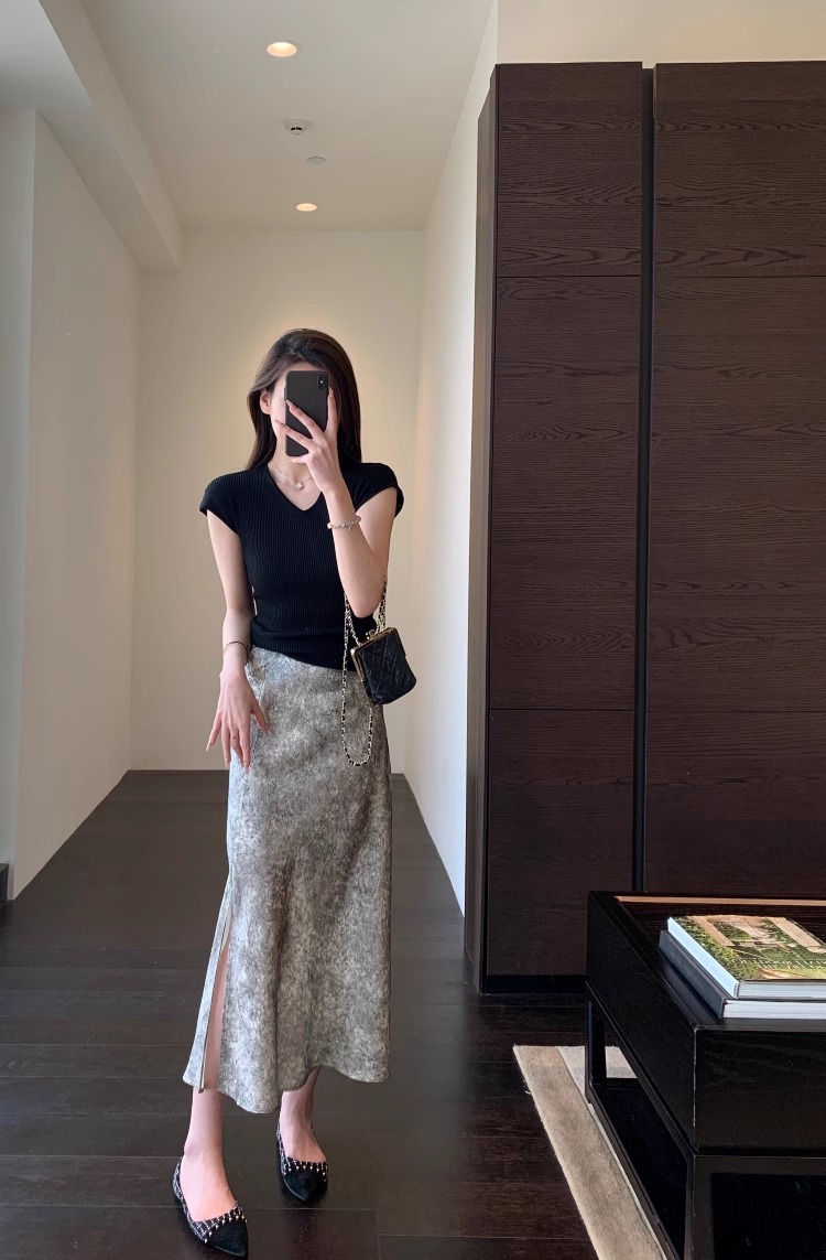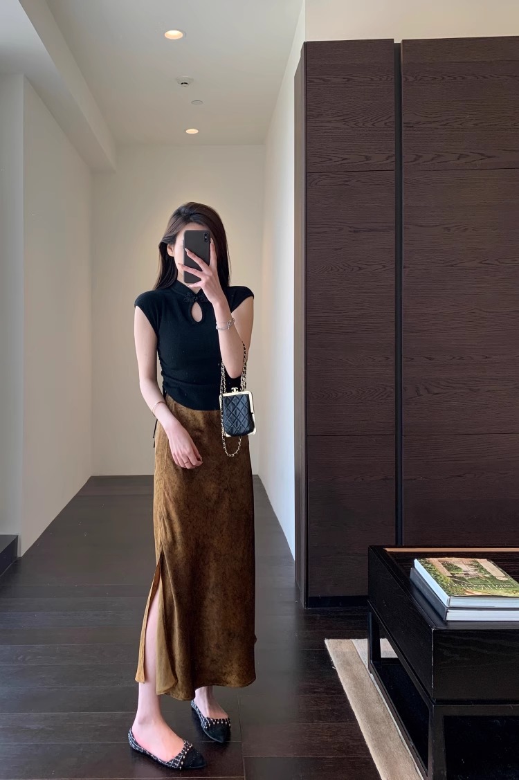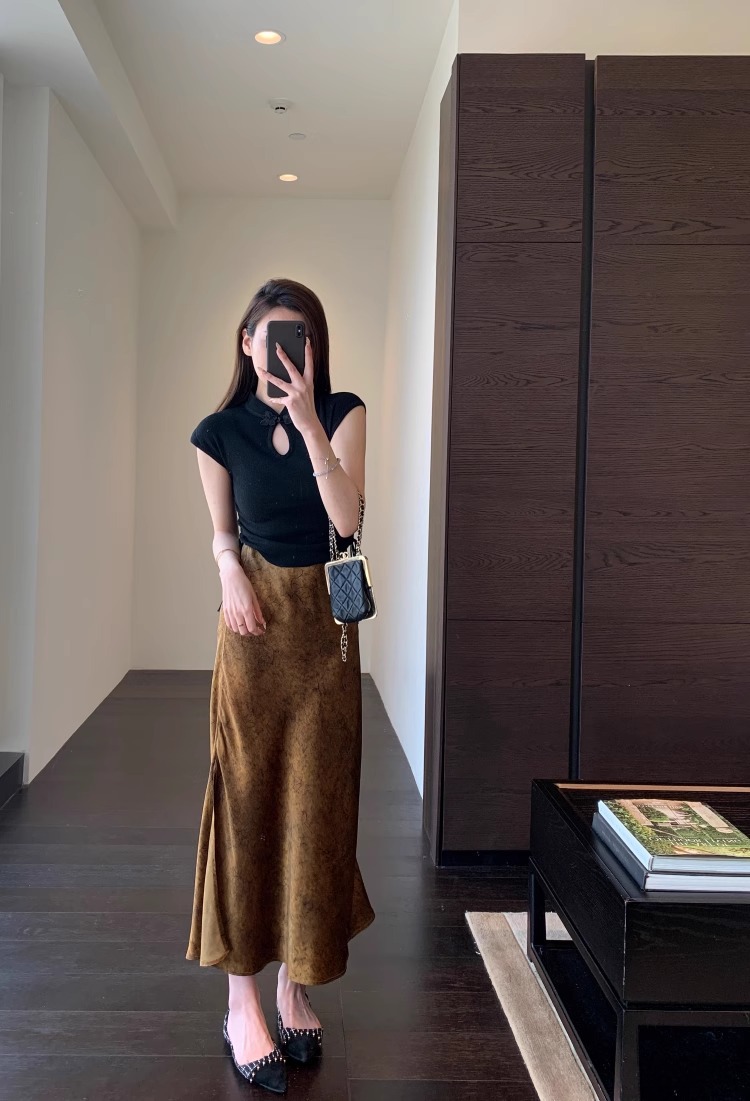 무거운 추천 새로운 중국 주름 아세테이트 새틴 Fishtail 스커트 높은 허리 슬리밍 쉬스 스플릿 여성용 스커트
