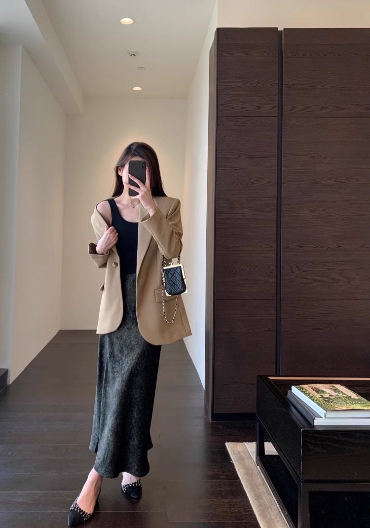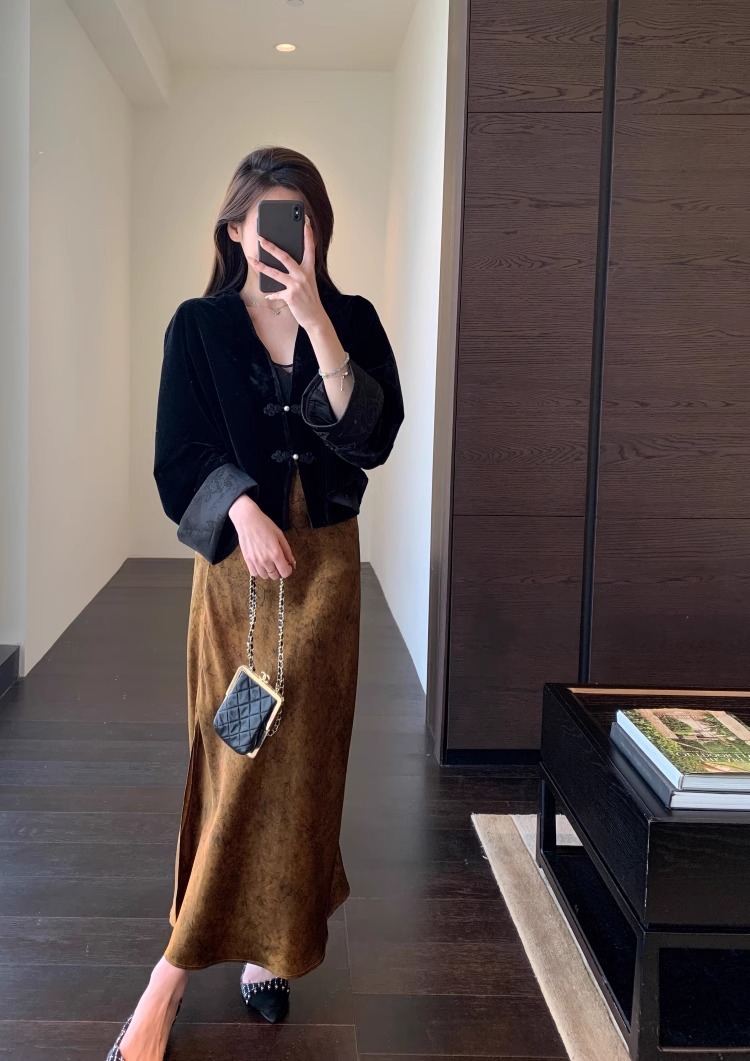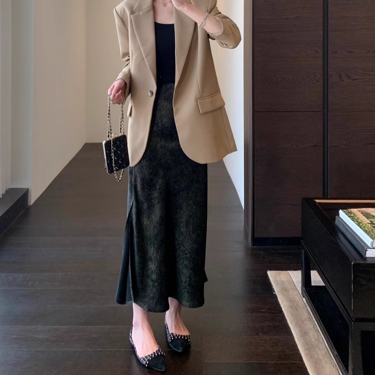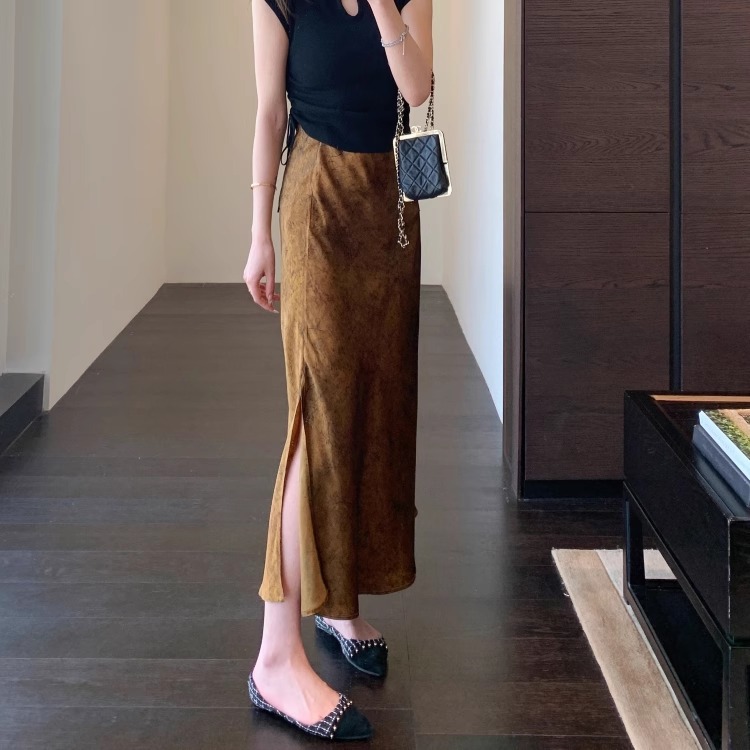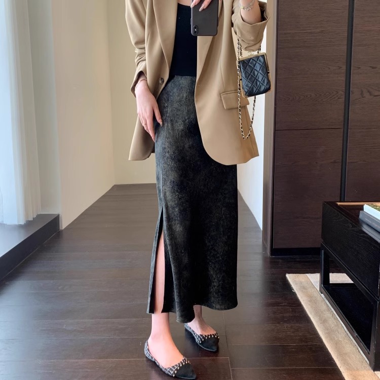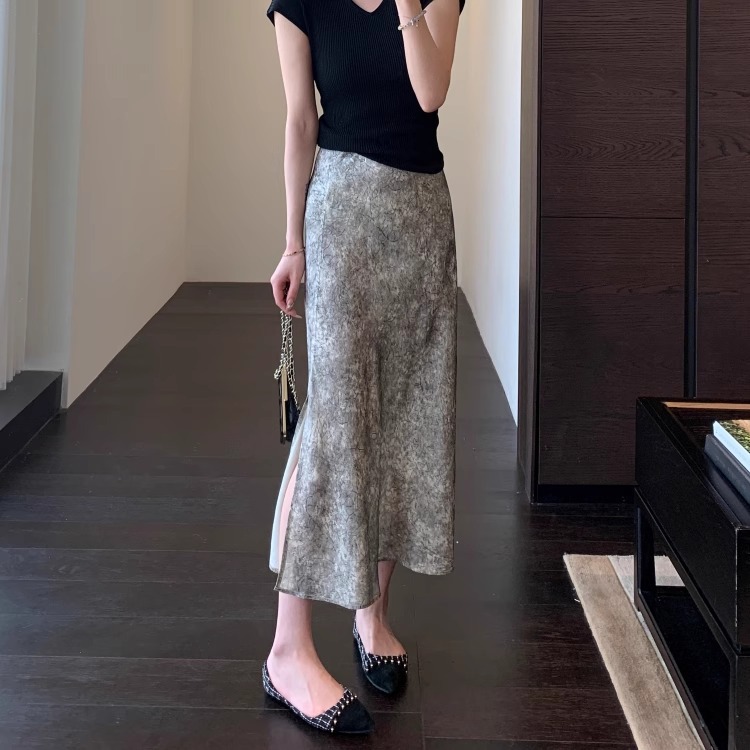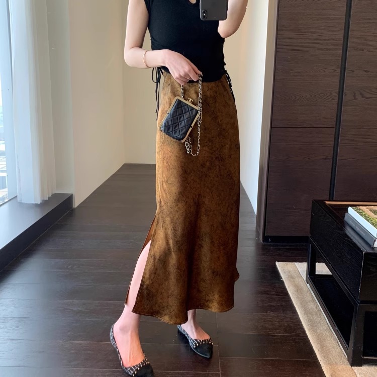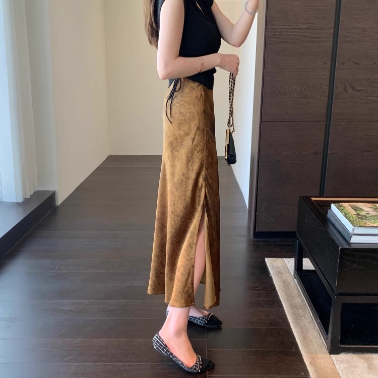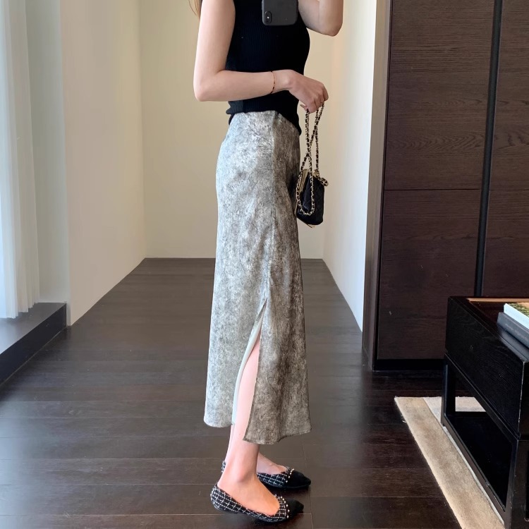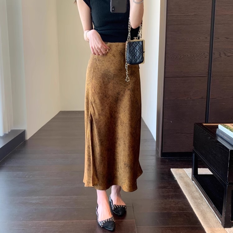 무거운 추천 새로운 중국 주름 아세테이트 새틴 Fishtail 스커트 높은 허리 슬리밍 쉬스 스플릿 여성용 스커트스토어 가기