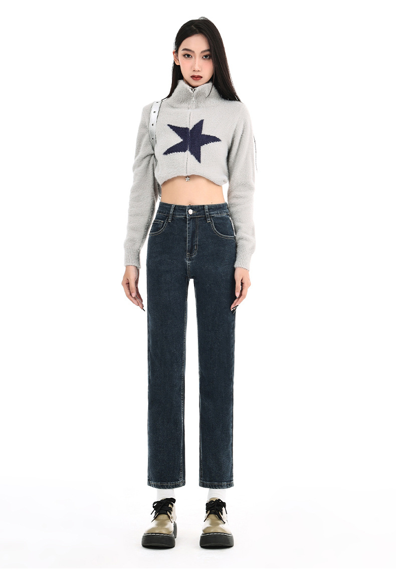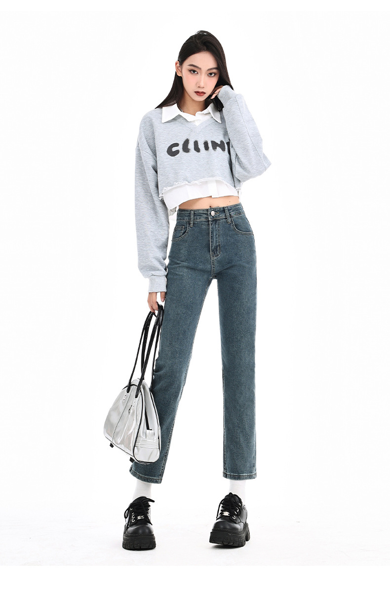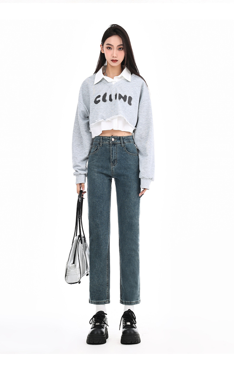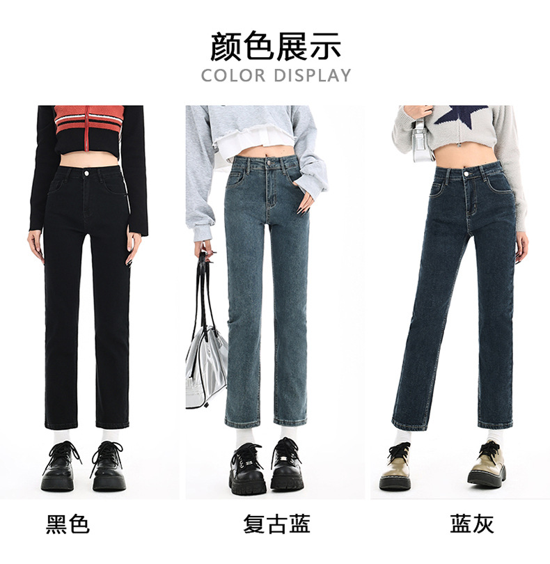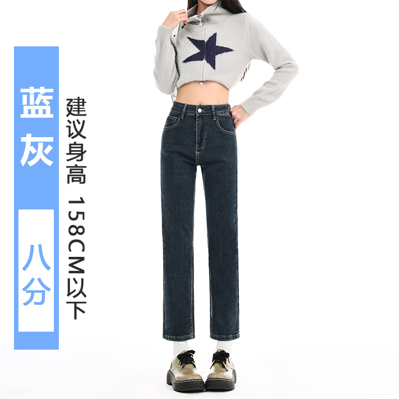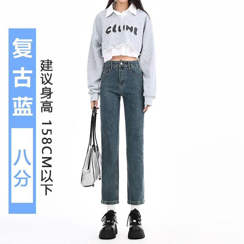 여성용 블루 그레이 시가렛 팬츠, 2025 가을 신상 스타일, 슬림핏 바게트 팬츠, 9부 스트레이트 팬츠스토어 가기