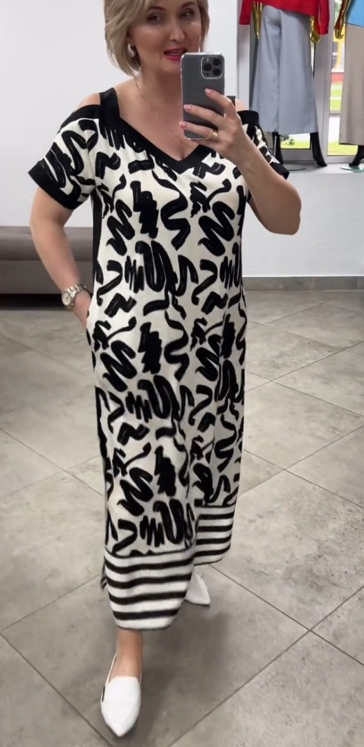 2024 년 여름 아마존 유럽과 미국 국경 간 V 넥 스티칭 짧은 소매 높은 허리 인쇄 원피스 여성 원피스