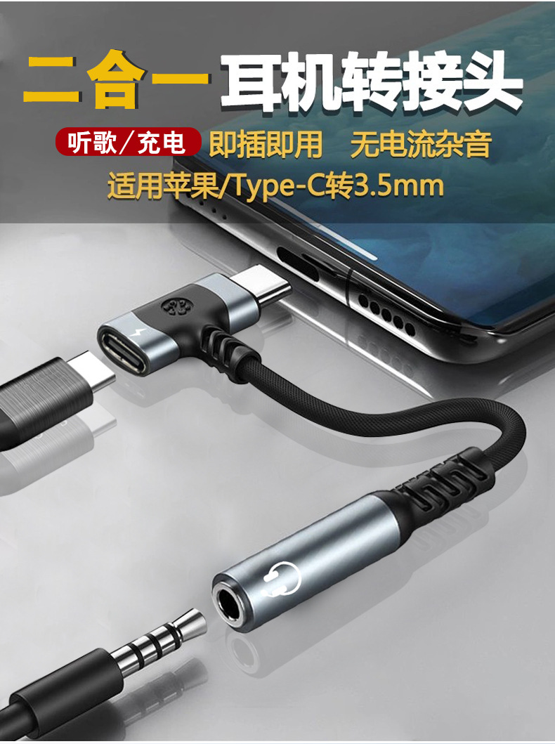 Apple iphone15 용 노래 듣기 및 2 대 1 어댑터 충전을위한 국경 간 유형-c 오디오 케이블 어댑터스토어 가기