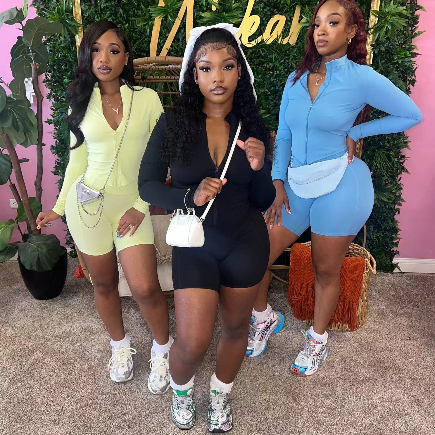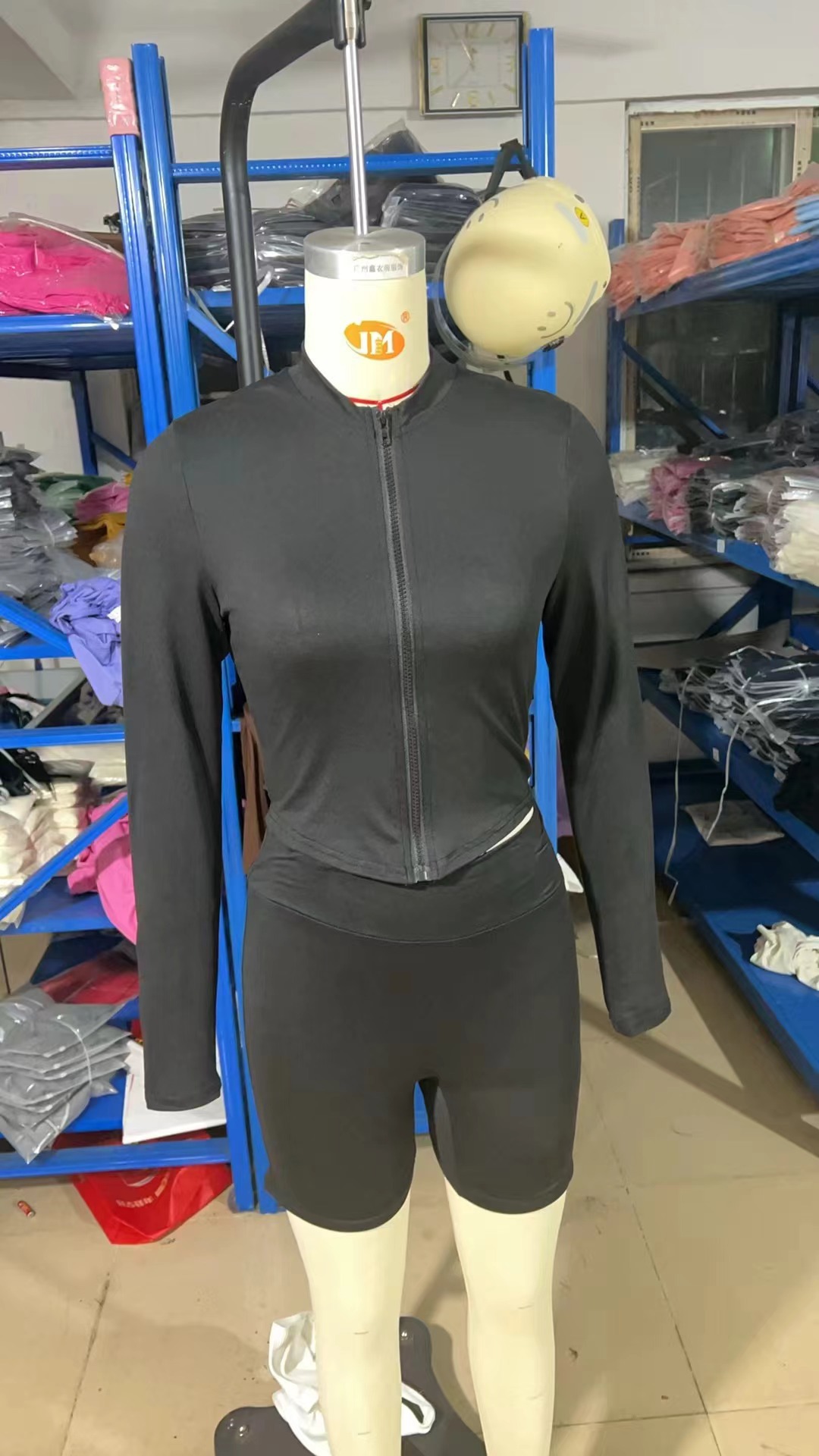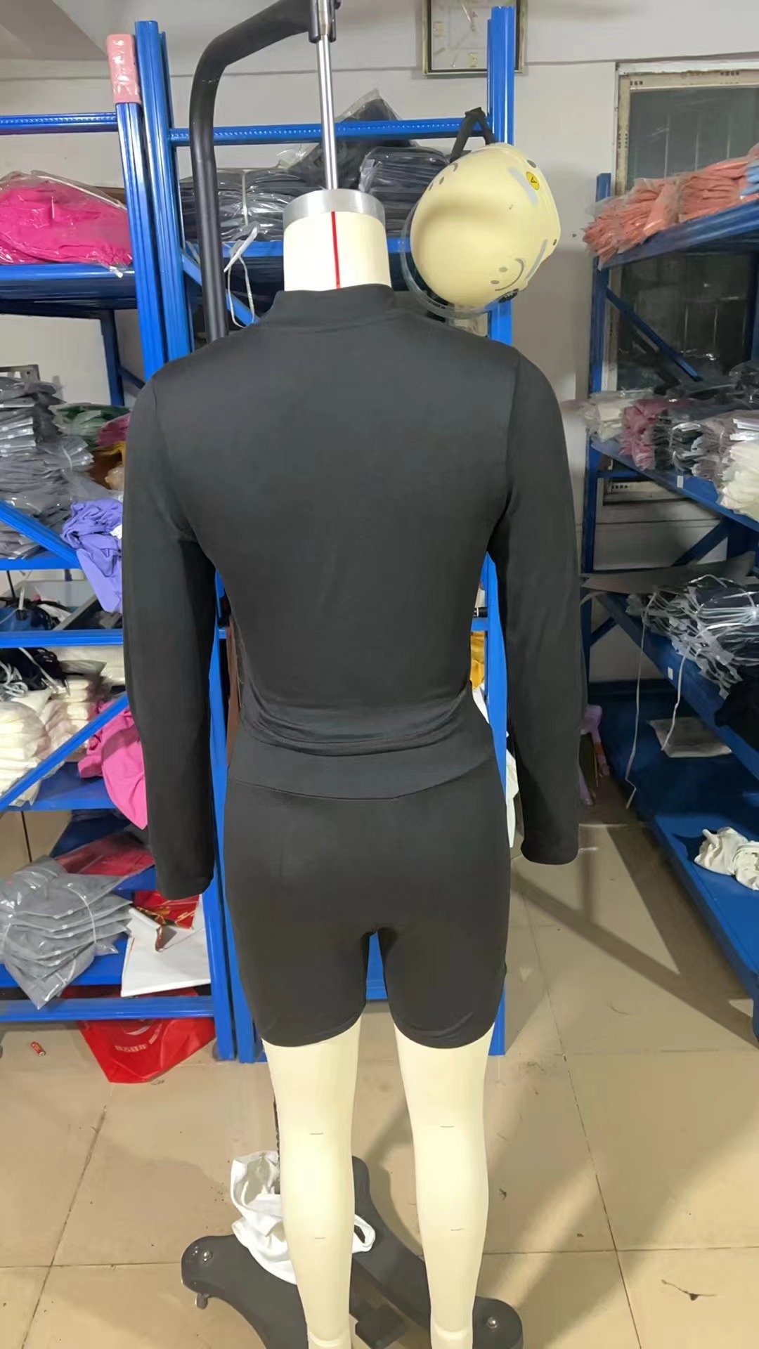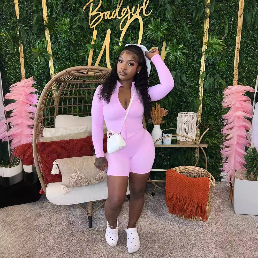 유럽과 미국 여자 가을 스포츠 레저 타이트한 허리 단색 긴팔 탑 반바지 투피스 여성스토어 가기
