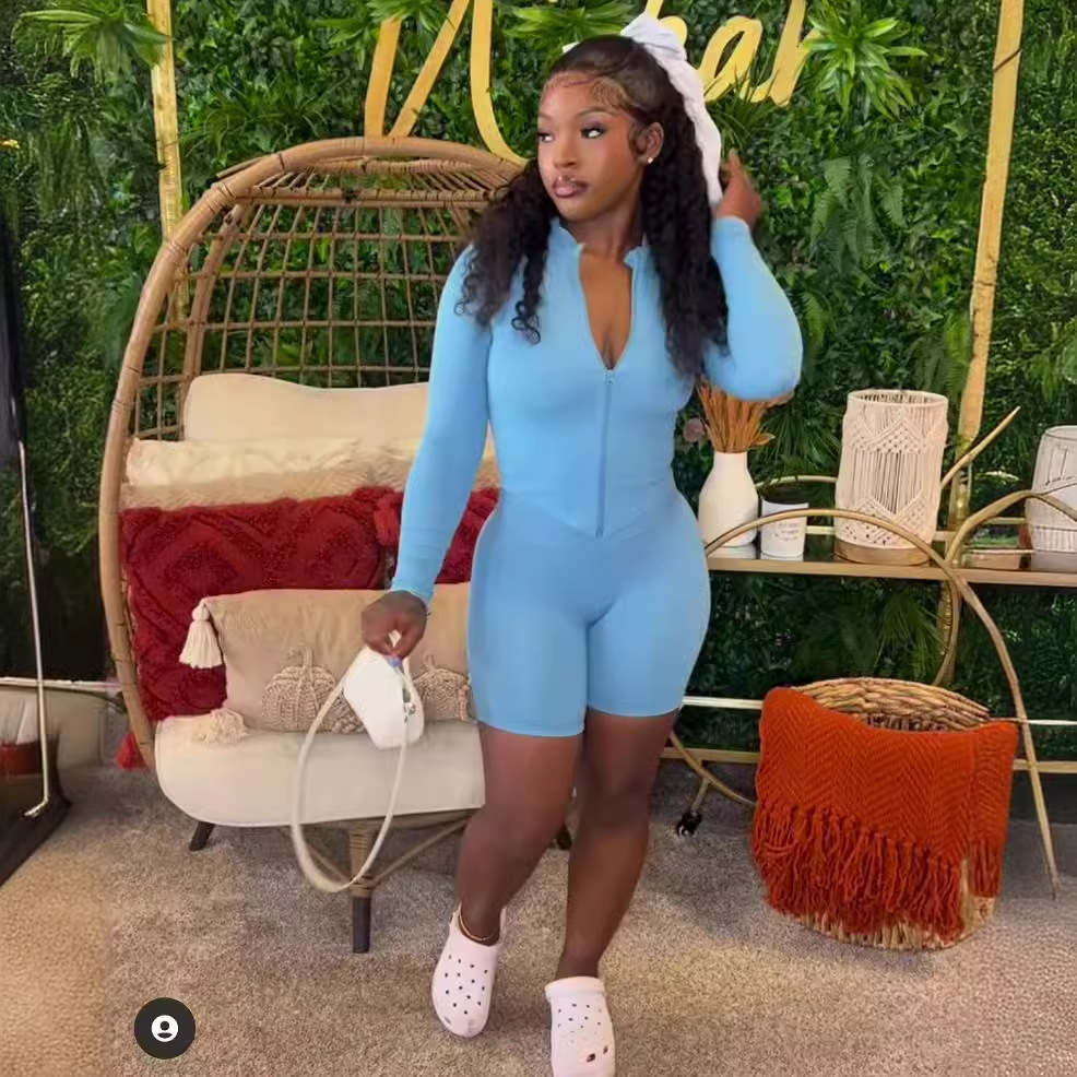 유럽과 미국 여자 가을 스포츠 레저 타이트한 허리 단색 긴팔 탑 반바지 투피스 여성