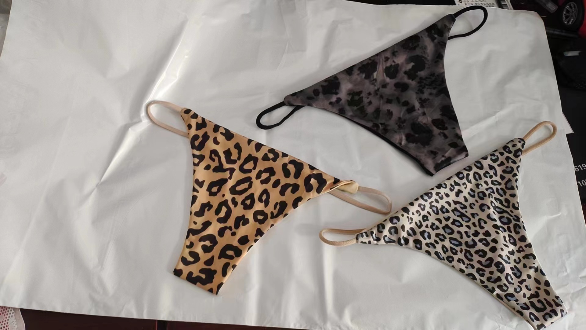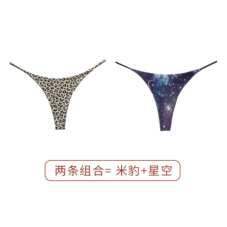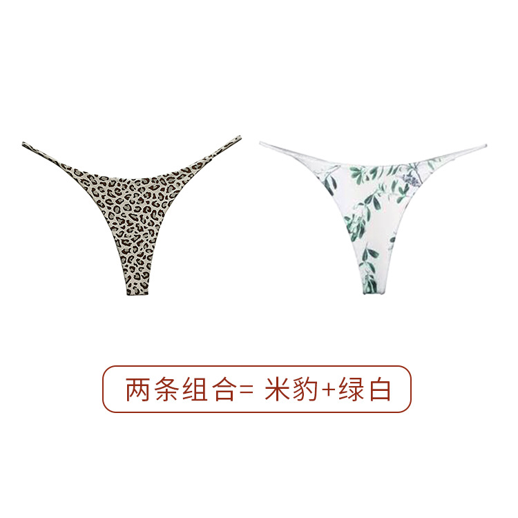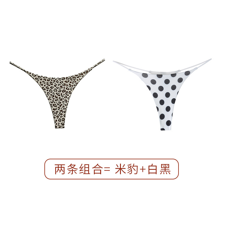 유럽과 미국의 섹시한 니트 통기성 속옷 더블 레이어 아이스 실크 얇은 벨트 레오파드 G-스트링 여성 낮은 허리 비키니 T-팬츠