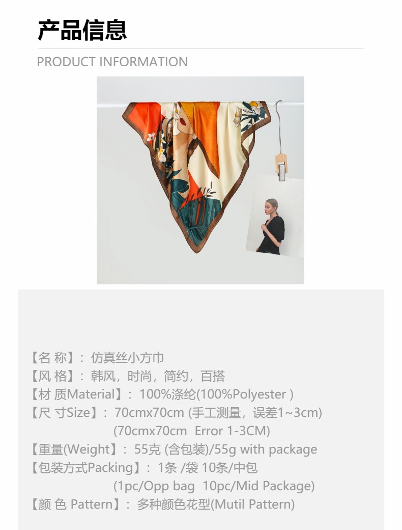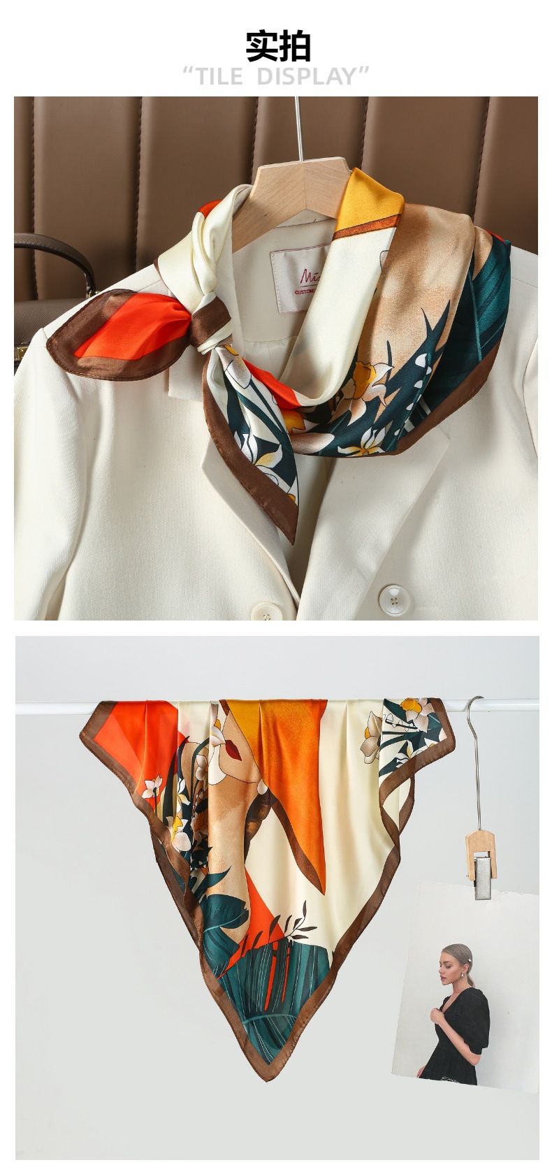 하이 엔드 프랑스 모자 소녀의 인쇄 실크 스카프 봄과 여름 빈티지 패션 올 매치 여성 모방 실크 스카프