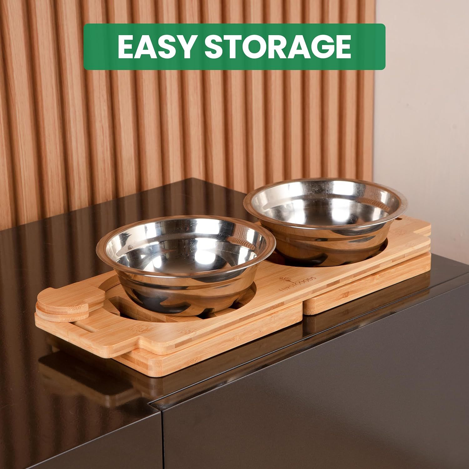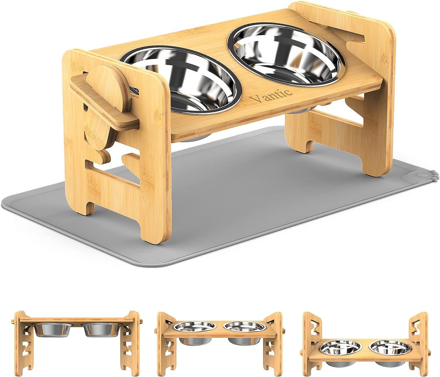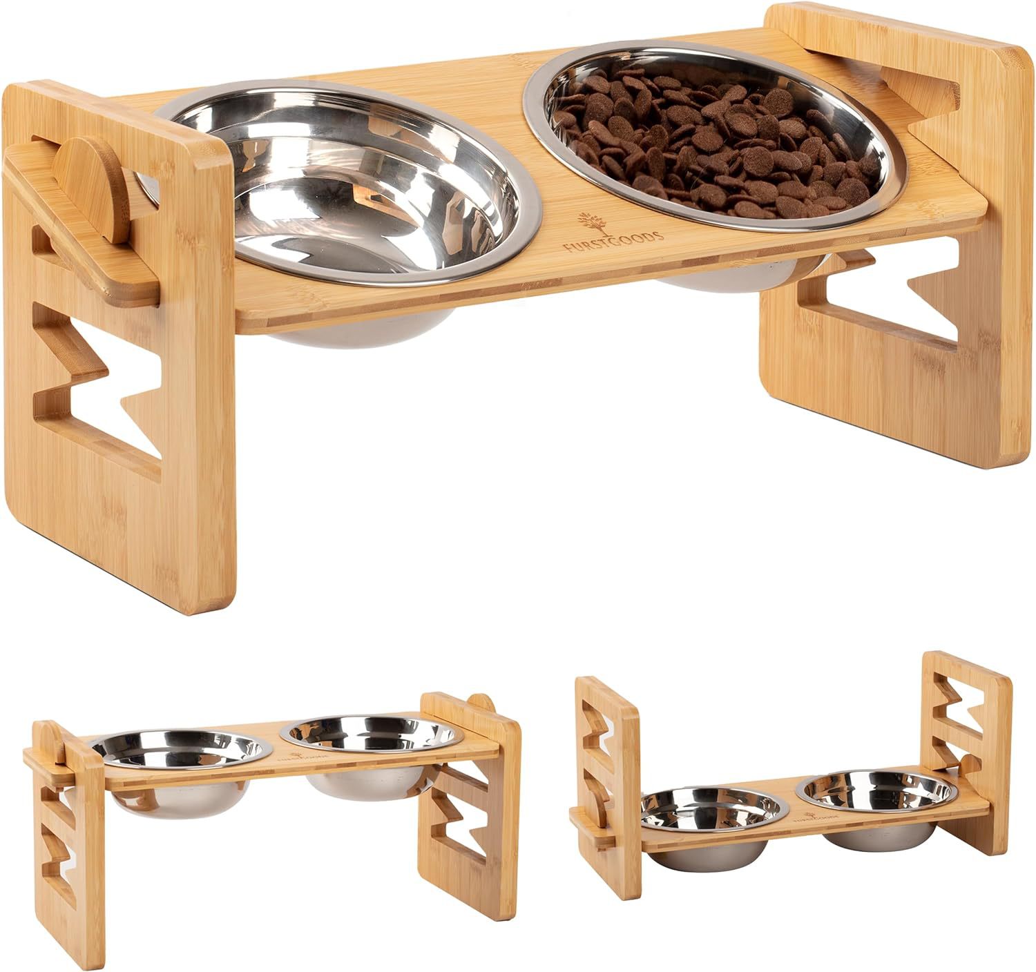 대나무 나무 애완 동물 개 그릇 랙 분해 조절 식 다이어트 분지 애완 동물 피더 국경 대나무 애완 동물 더블 그릇스토어 가기