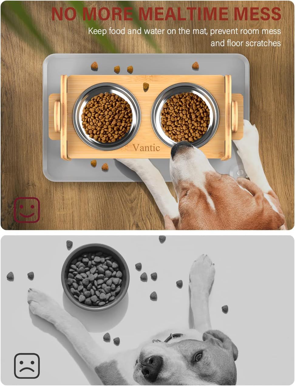 대나무 나무 애완 동물 개 그릇 랙 분해 조절 식 다이어트 분지 애완 동물 피더 국경 대나무 애완 동물 더블 그릇
