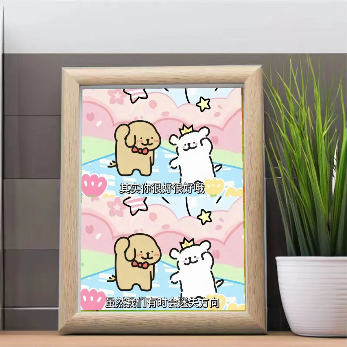 무료 배송 치료 견적 라인 강아지 주변 사진 프레임 귀여운 따뜻한 심장 책상 테이블 친구 창조적 인 선물스토어 가기
