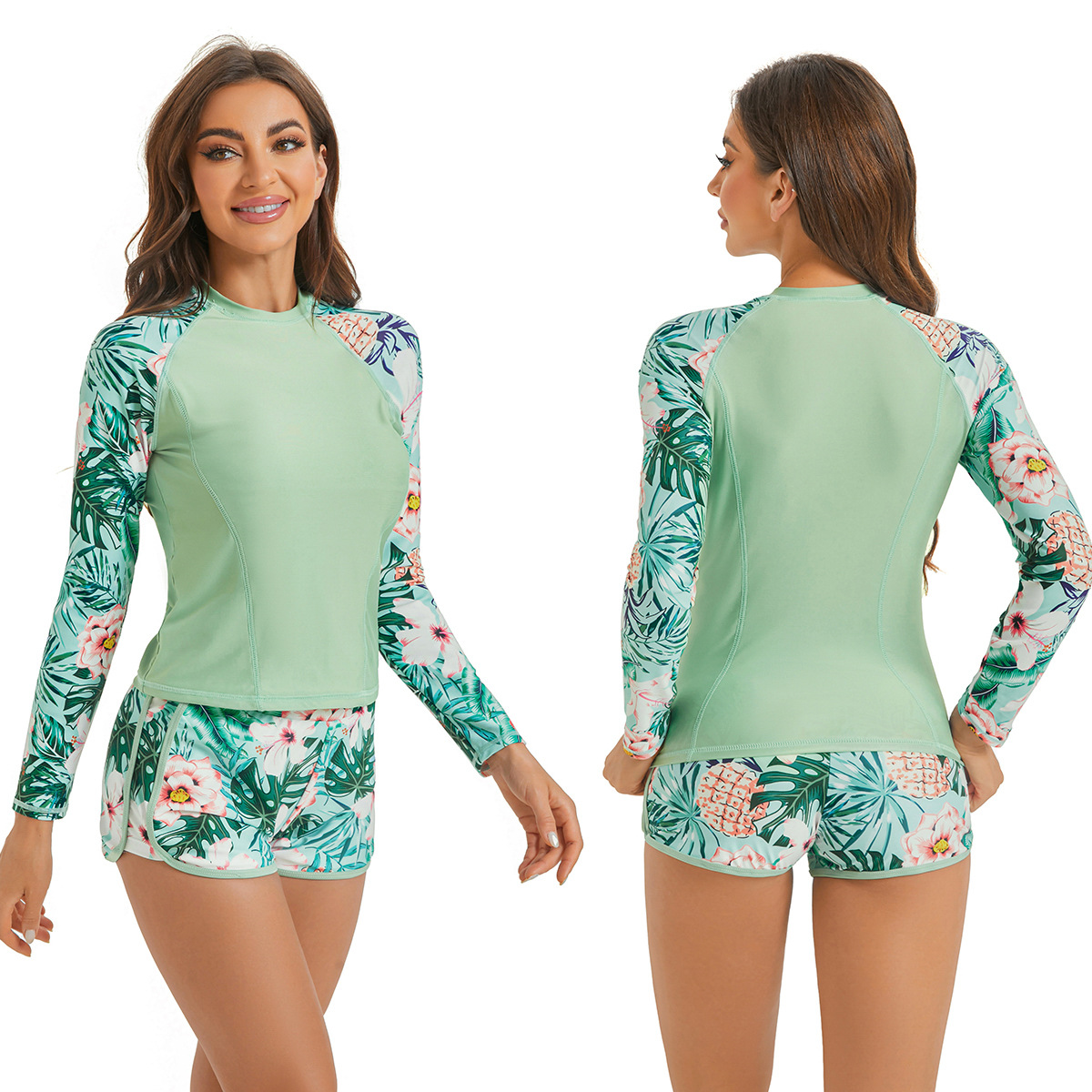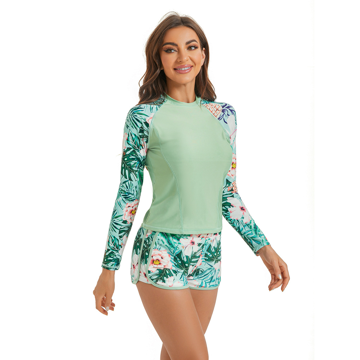 2024년형 스플릿 수영복 긴팔 자외선 차단 프린트 수영복 아마존 해외 수출 다이빙 슈트 스포츠 스타일 유럽 및 미국 스타일