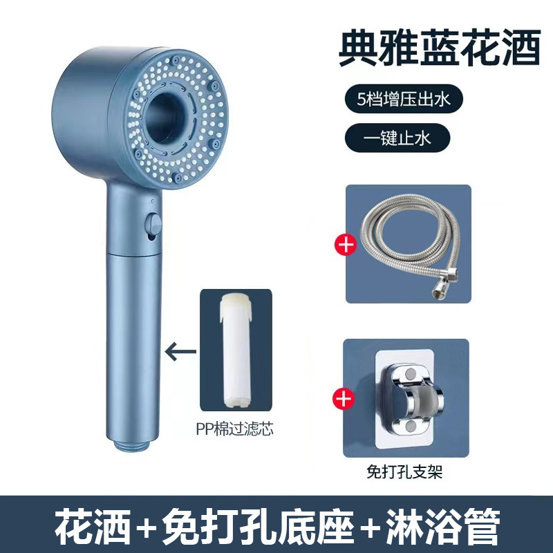 • [우아한 블루] 샤워 헤드 + 1.5m 튜브 + 베이스