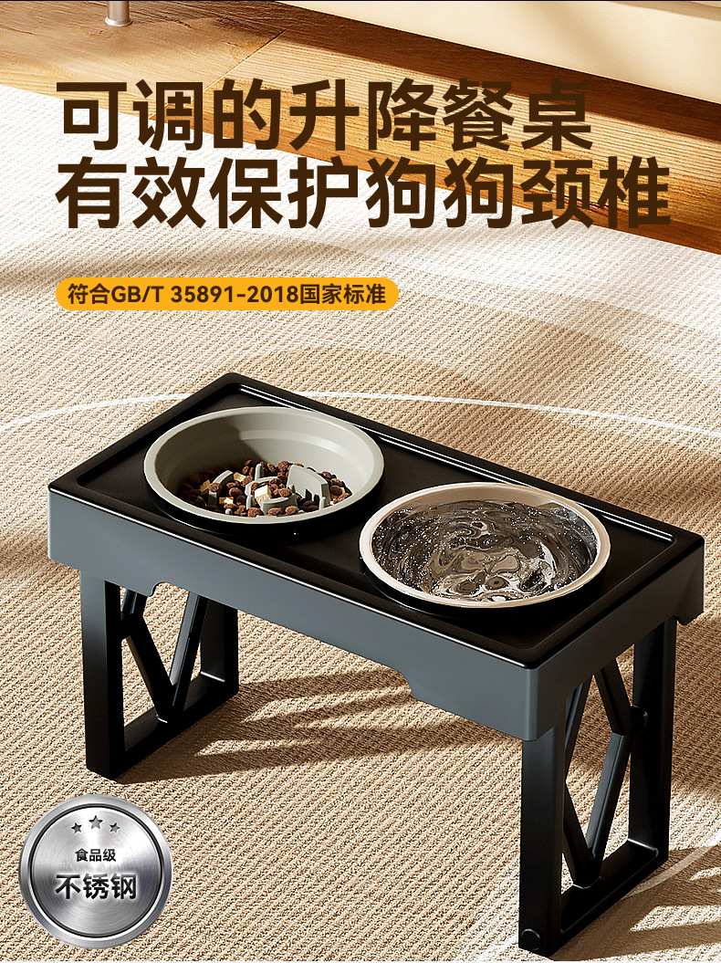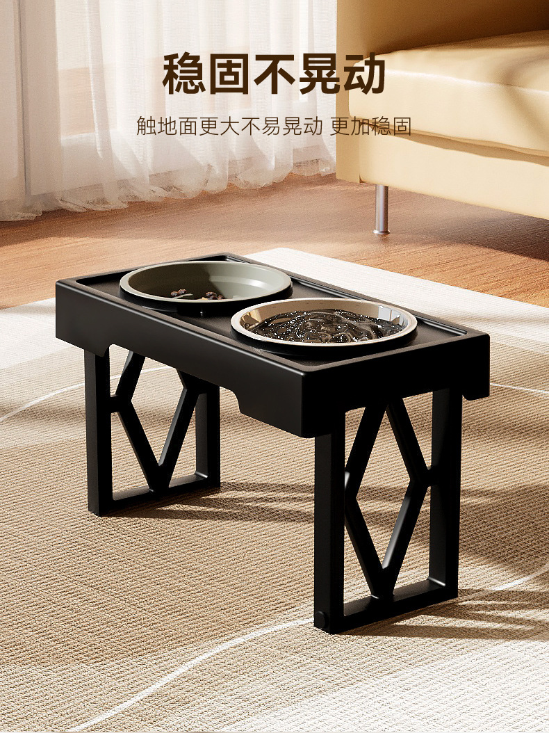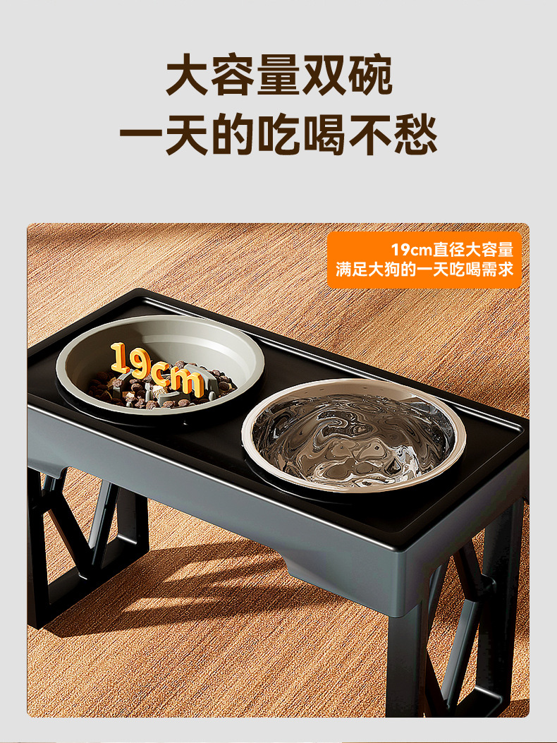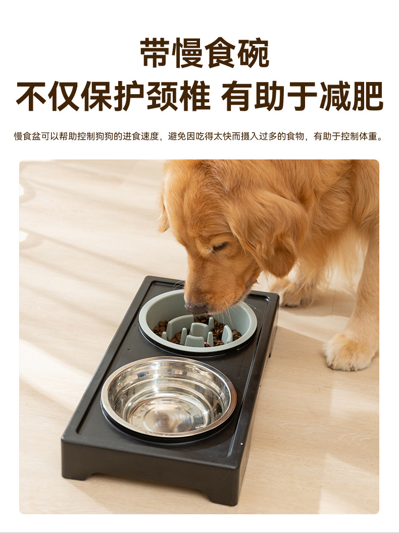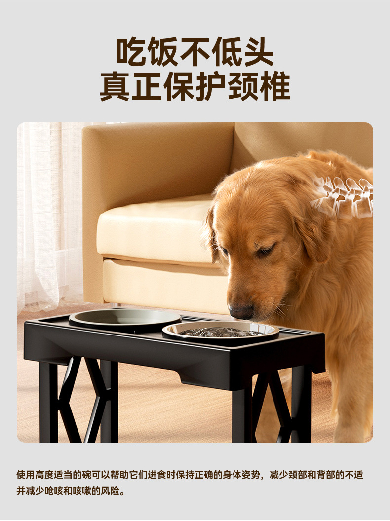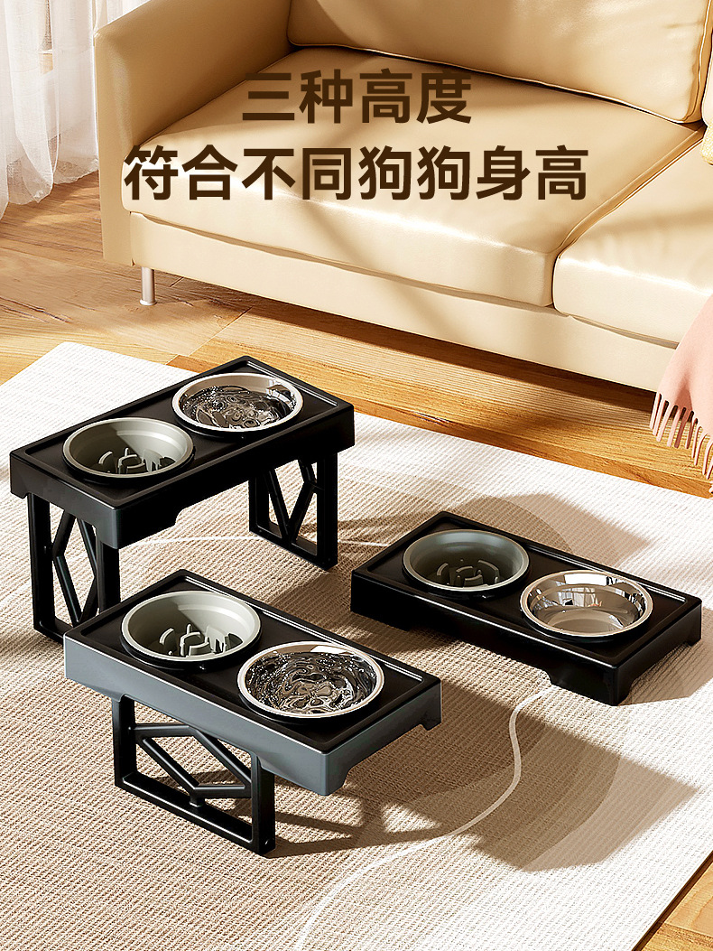 검은 간단한 조정 가능한 높은 그릇 중형 및 큰 개 작은 개 목 보호 그릇 더블 그릇 애완 동물 식수 공급스토어 가기