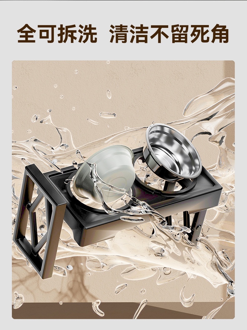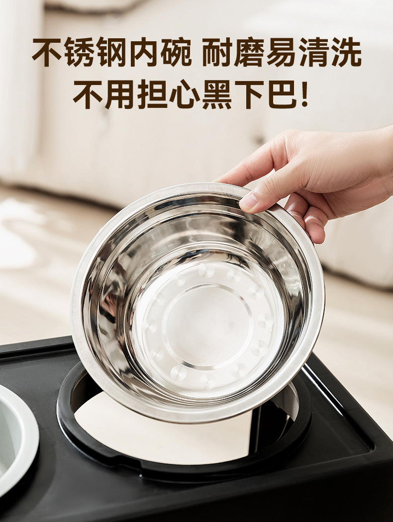 검은 간단한 조정 가능한 높은 그릇 중형 및 큰 개 작은 개 목 보호 그릇 더블 그릇 애완 동물 식수 공급