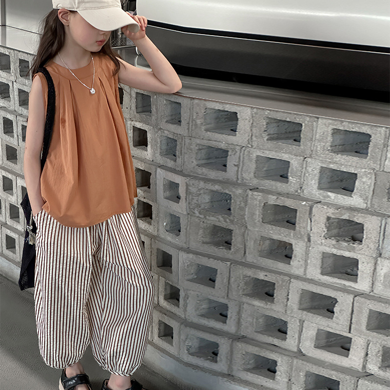 소녀의 큰 소년의 세트 여름 2024 새로운 어린이 소녀 학생의 패셔너블 캐주얼 한국 스타일 민소매 여름 원피스스토어 가기
