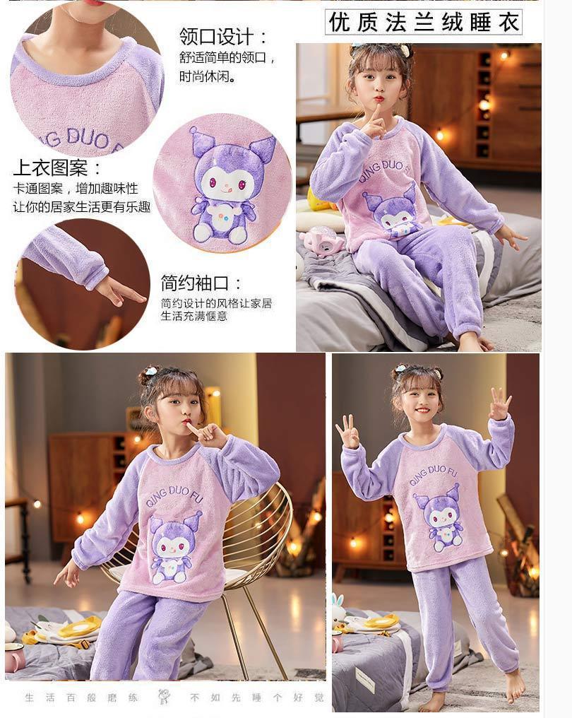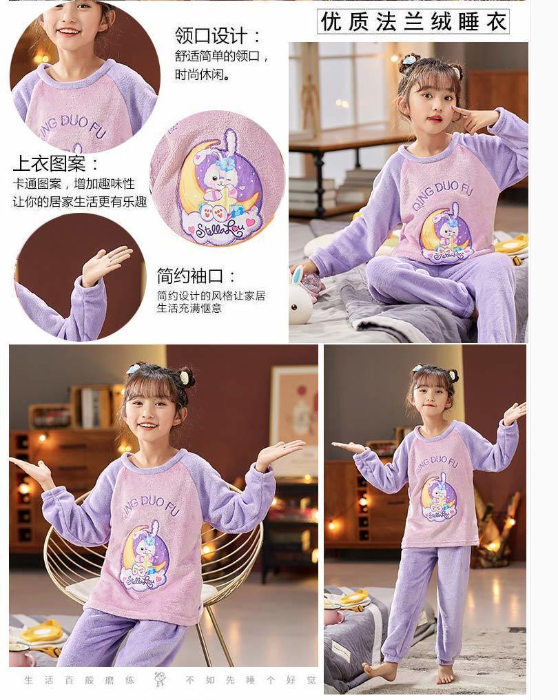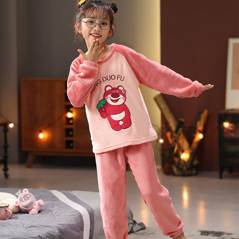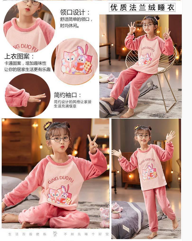 가을과 겨울 어린이 잠옷 여성 플란넬 만화 귀여운 어린 소녀 아기 산호 양털 홈 의류 세트스토어 가기